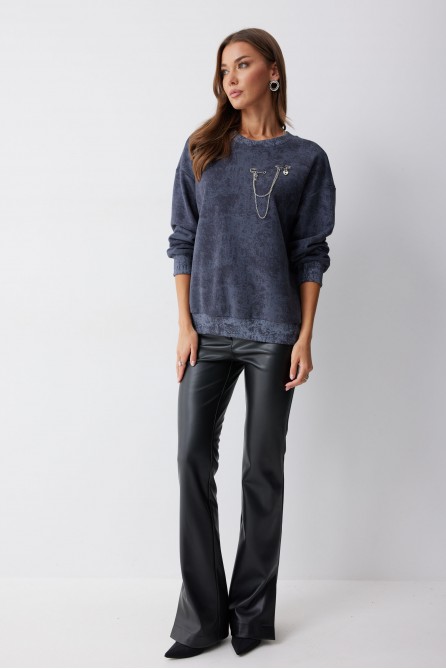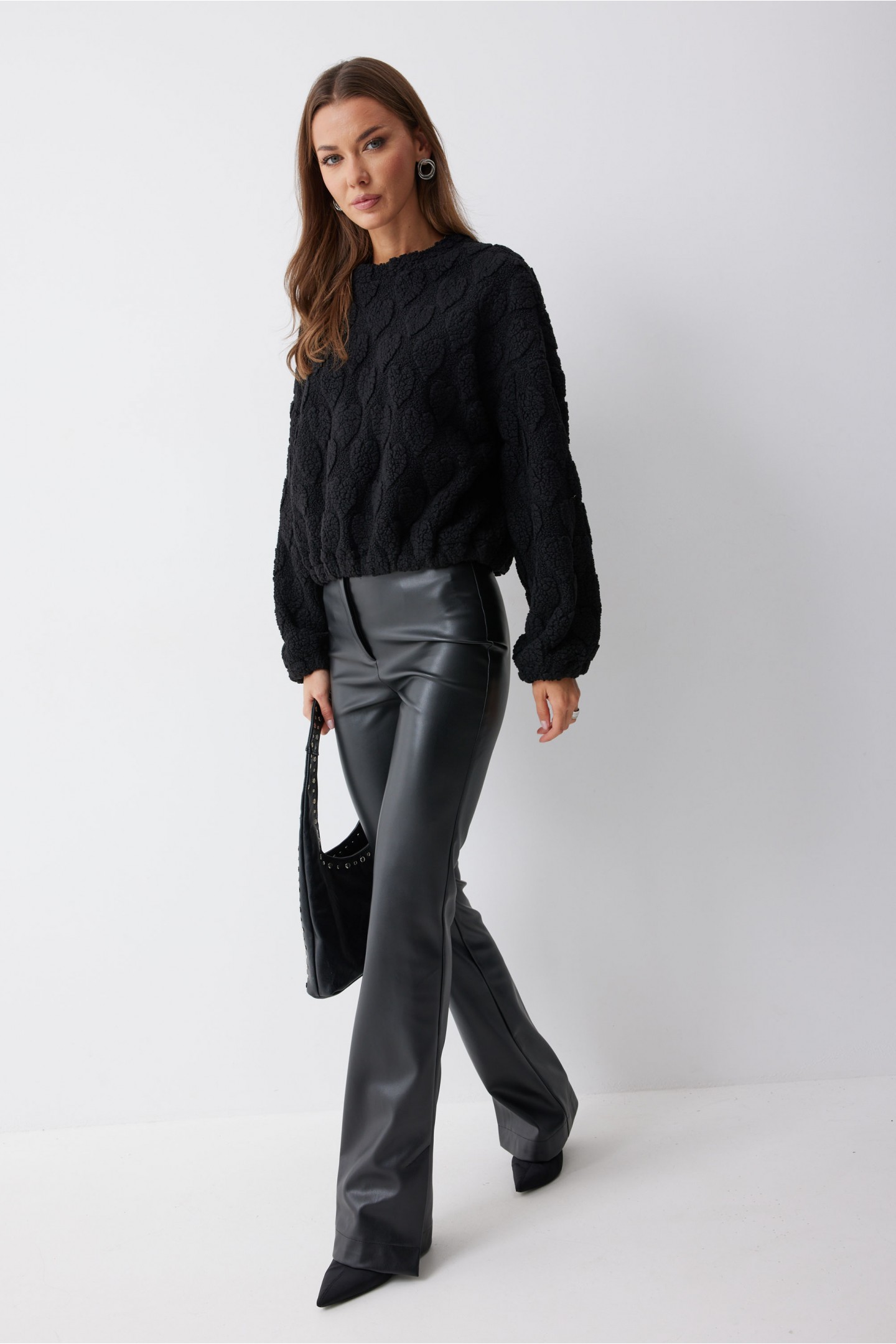 | Описание | Брюки прилегающего силуэта расширенные книзу из экокожи. По верху притачной пояс с застежкой на петлю и пуговицу. На передних половинках обработана застежка молния в среднем шве. По низу брюк в боковом шве шлица.Обращаем ваше внимание, что фурнитура может отличаться от фото. |