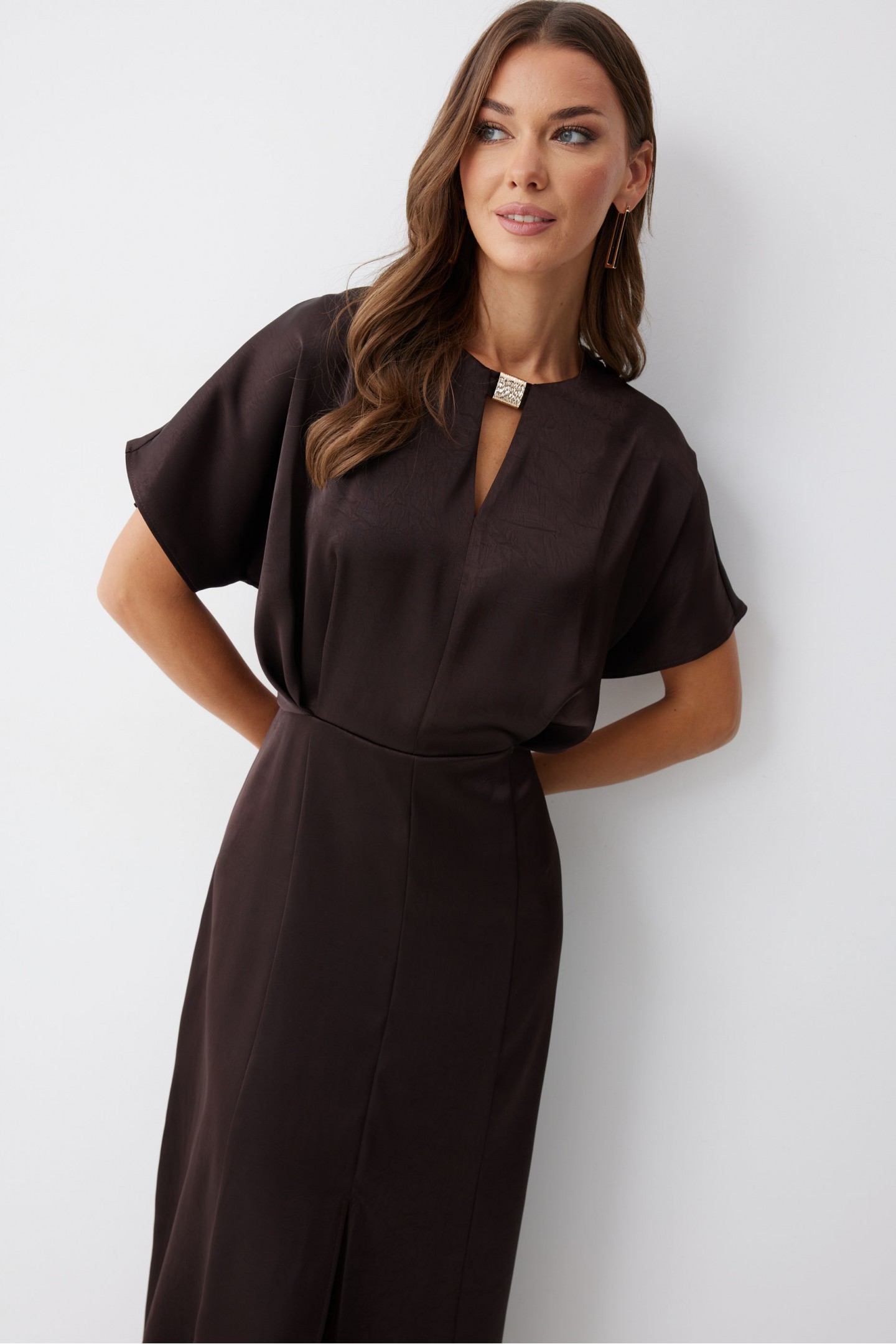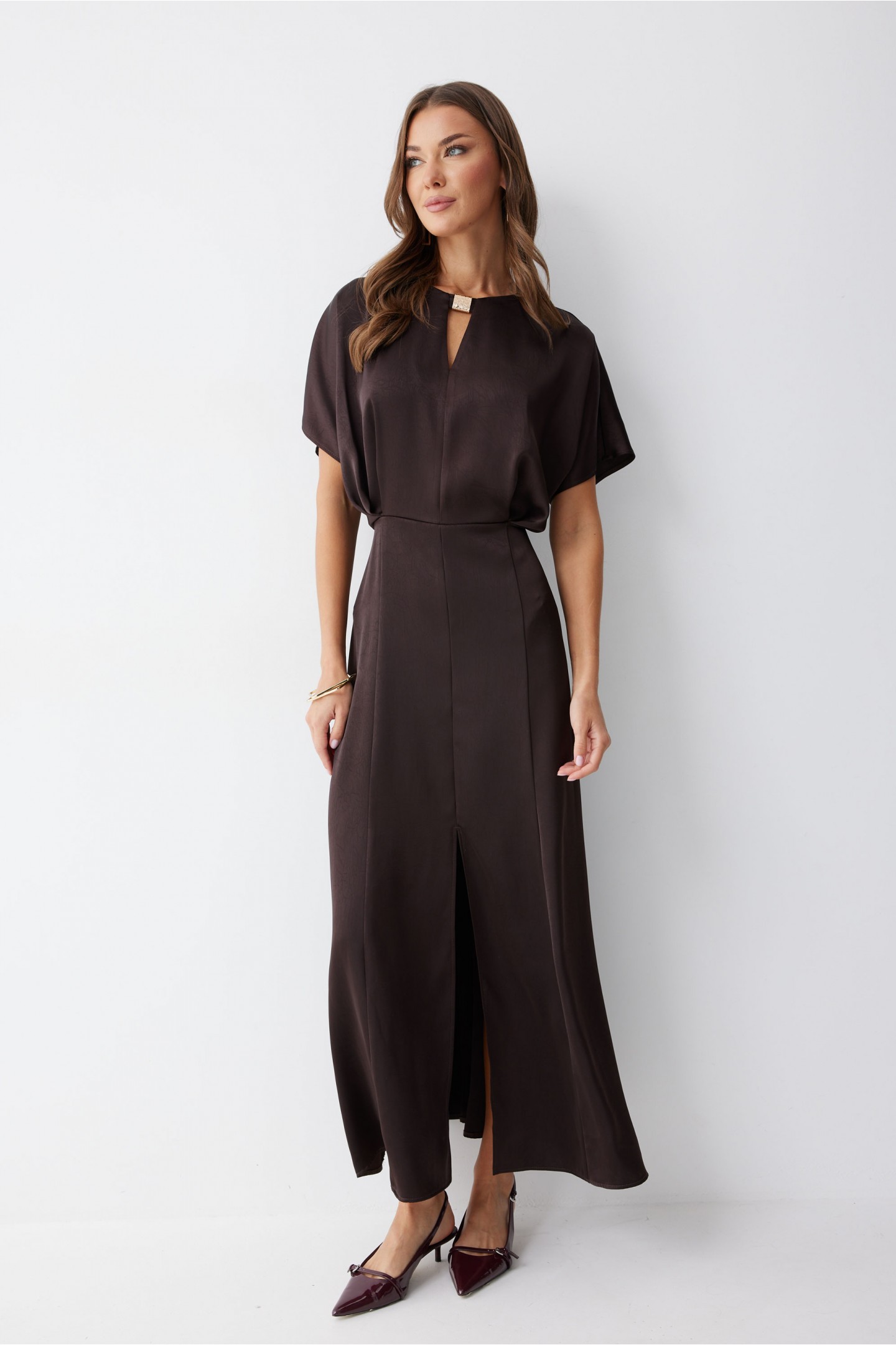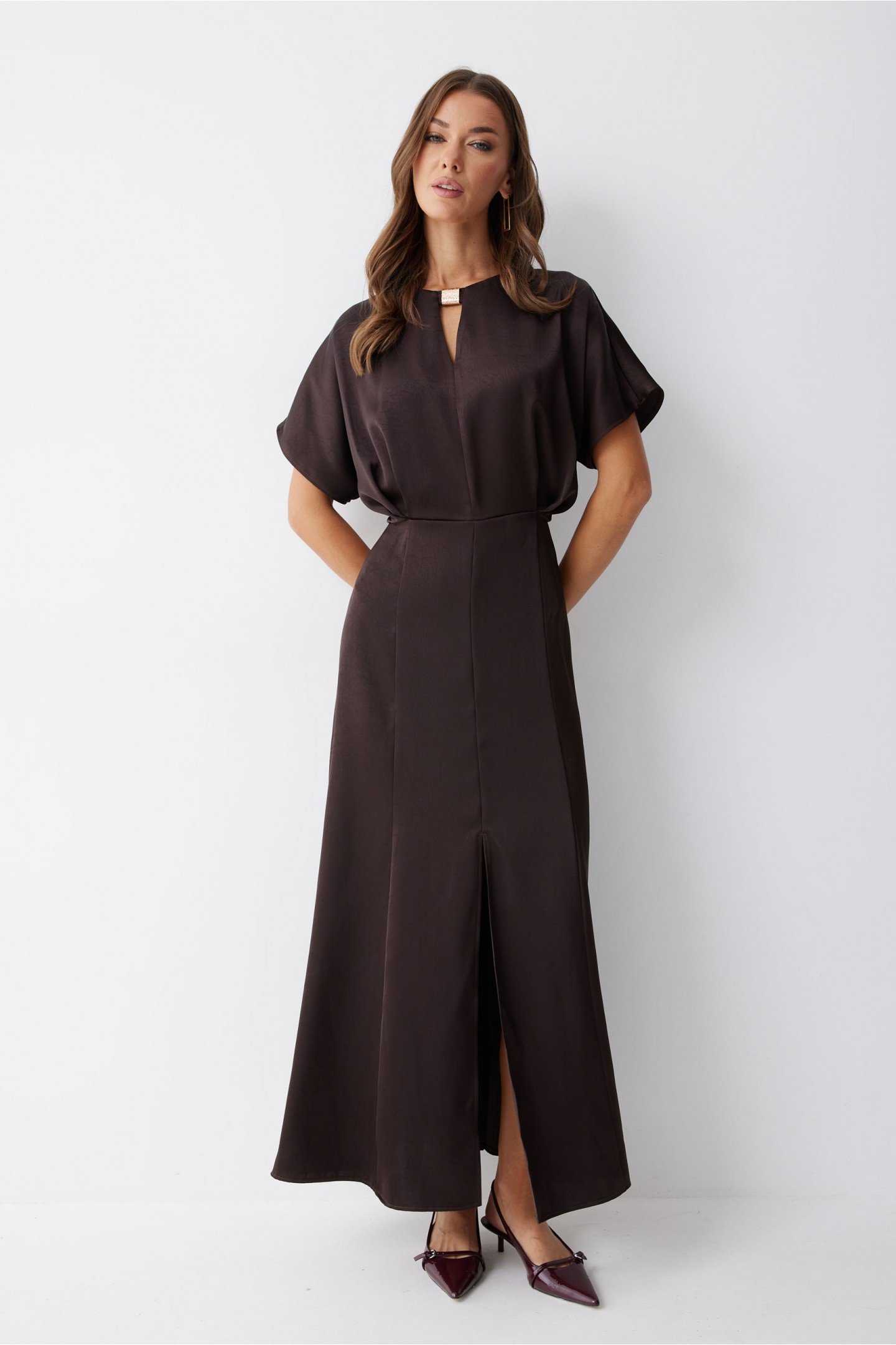| Описание | Нарядное платье из струящейся ткани длины макси. Рукав цельнокроеный. Платье отрезное по линии талии, на полочке заложены складки. Горловина округлая, с декоративно протяжкой по центру. По спинке средний шов с застежкой на потайную молнию. Юбка расширенна книзу от бедра. Обращаем ваше внимание, что фурнитура может незначительно отличаться от фото. |