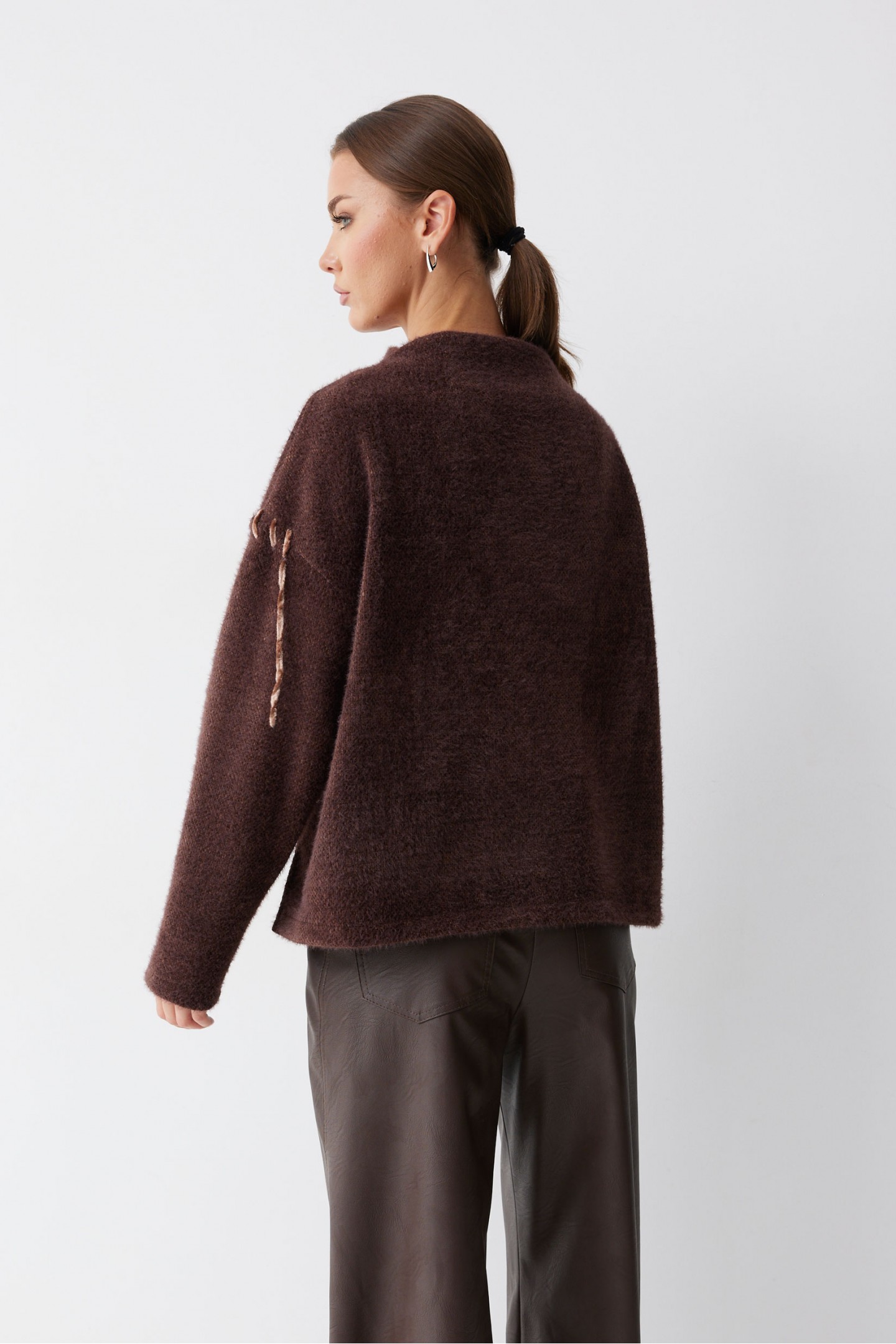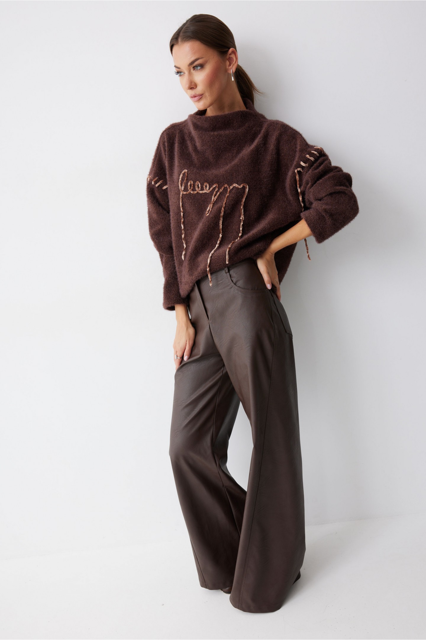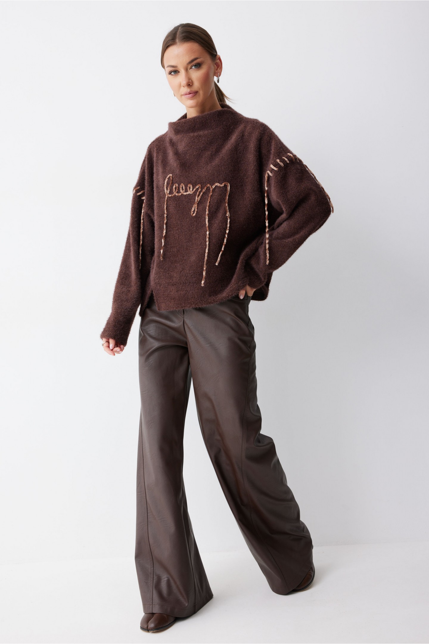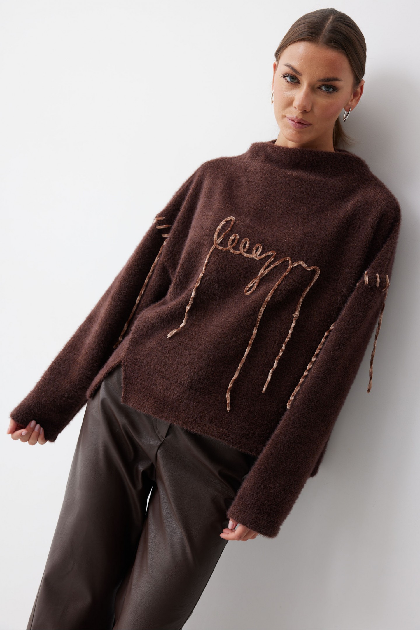 | Описание | Джемпер прямого силуэта из трикотажного полотна с фигурным низом. Горловина цельнокроеная стойка. Рукав со спущенной линией плеча, удлиненный. Джемпер со смещенным боковым швом. По переду джемпера дизайнерская вышивка |