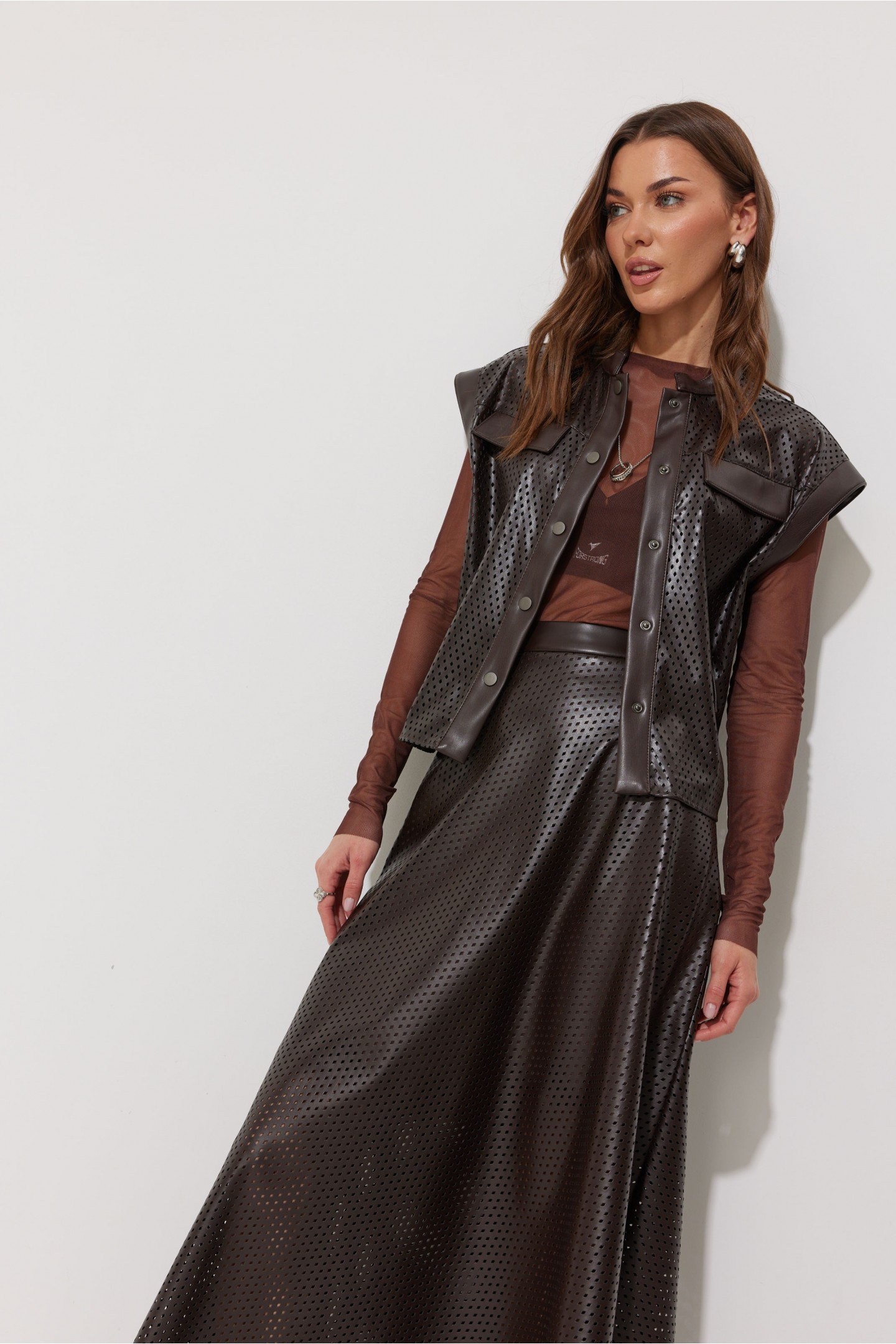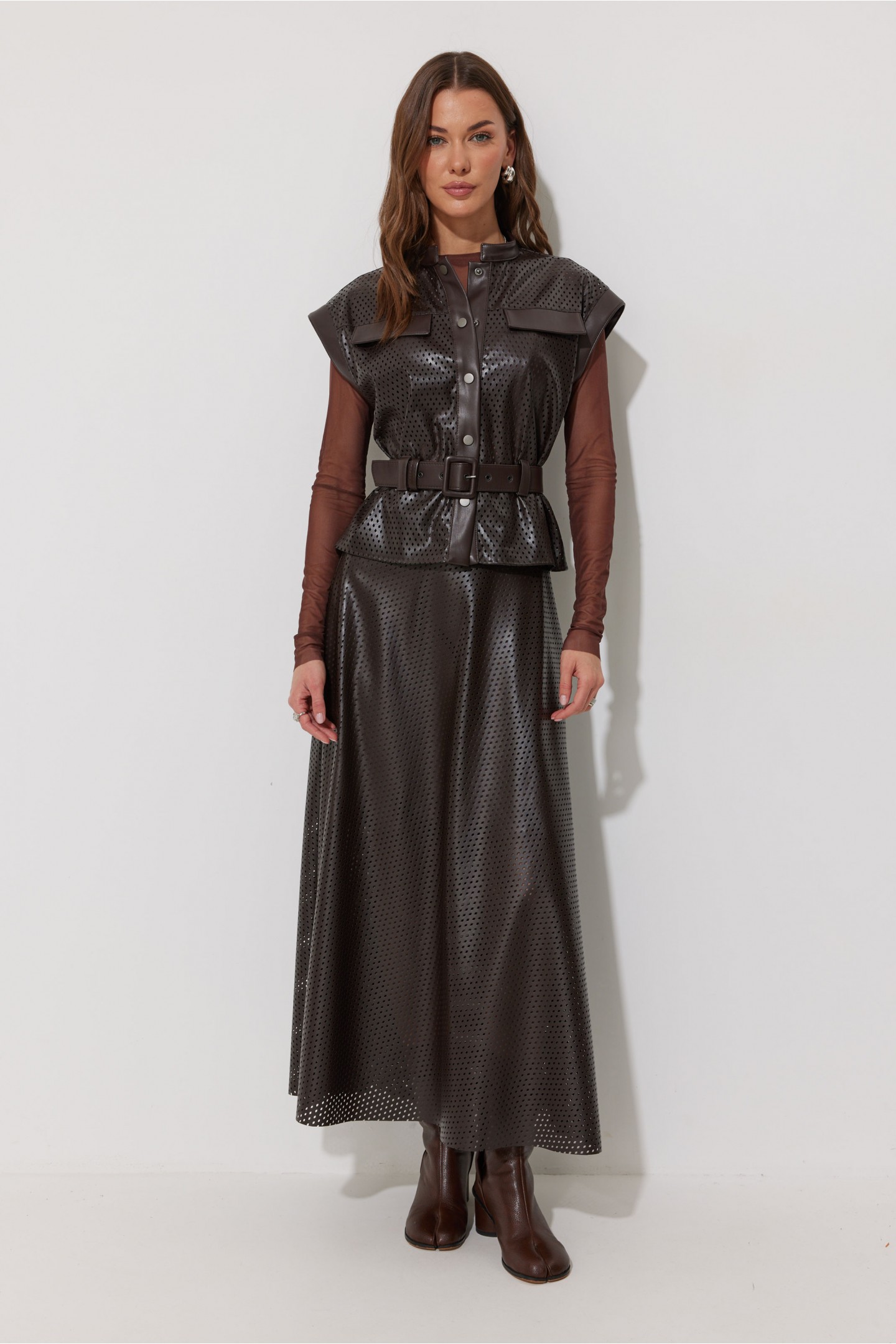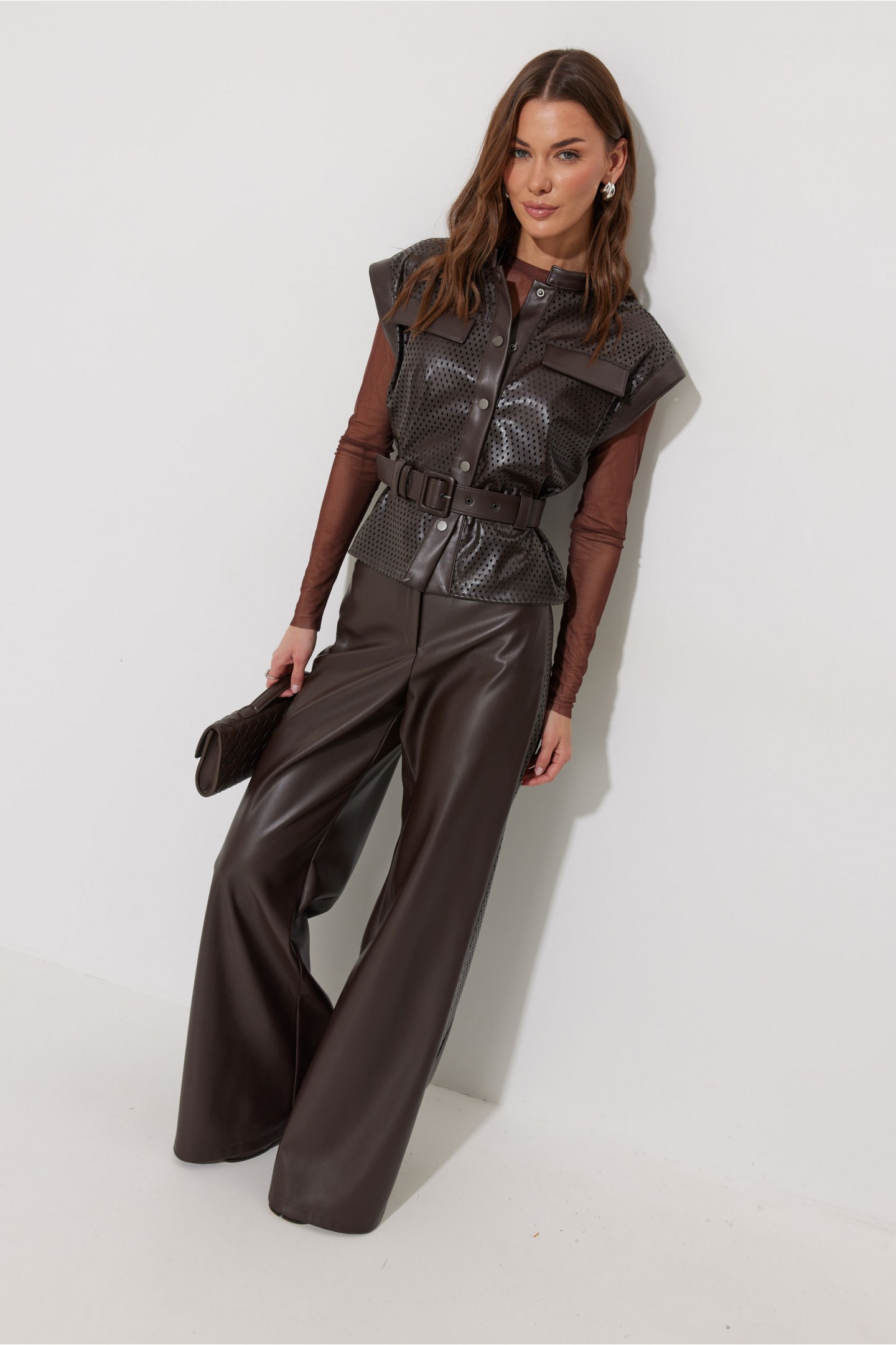 | Описание | Жилет прямого силуэта из экокожи с перфорацией. Горловина-стойка, по переду застежка на кнопки. Жилет со спущенной линией плеча и отделочными манжетами. По переду кокетка с декоративными клапанами и шлевками для ремня. В комплект входит съемный ремень. Обращаем ваше внимание, что фурнитура может отличаться от фото. |