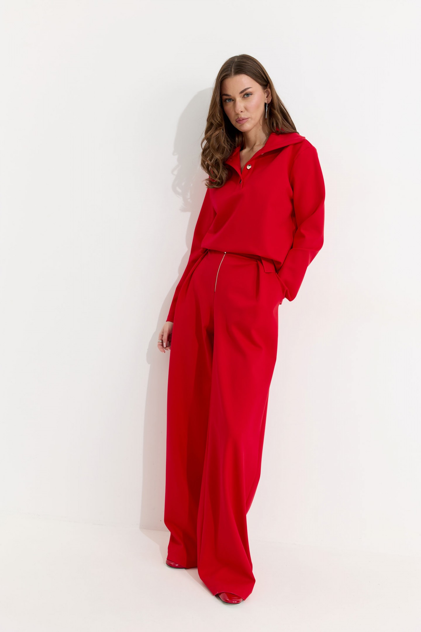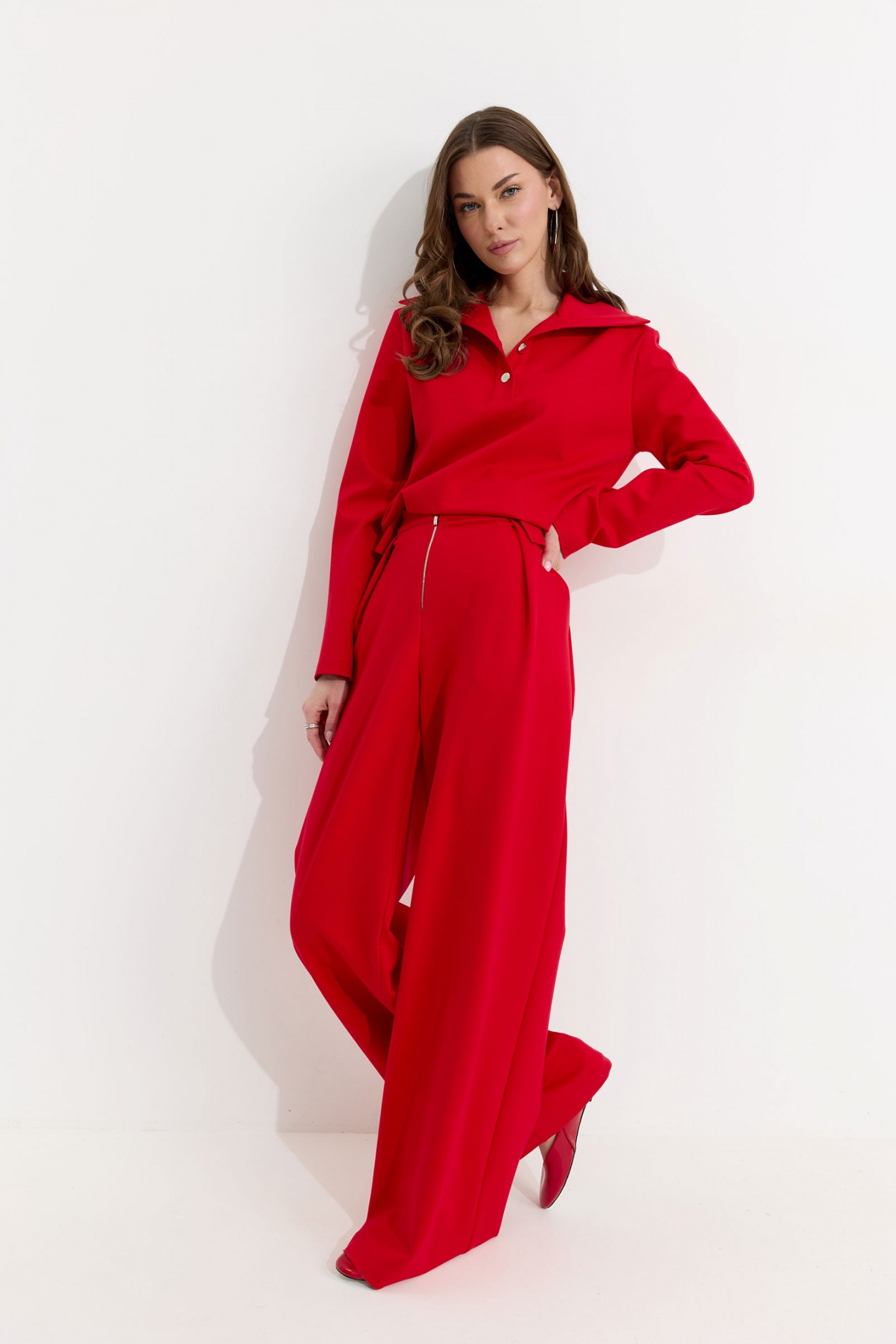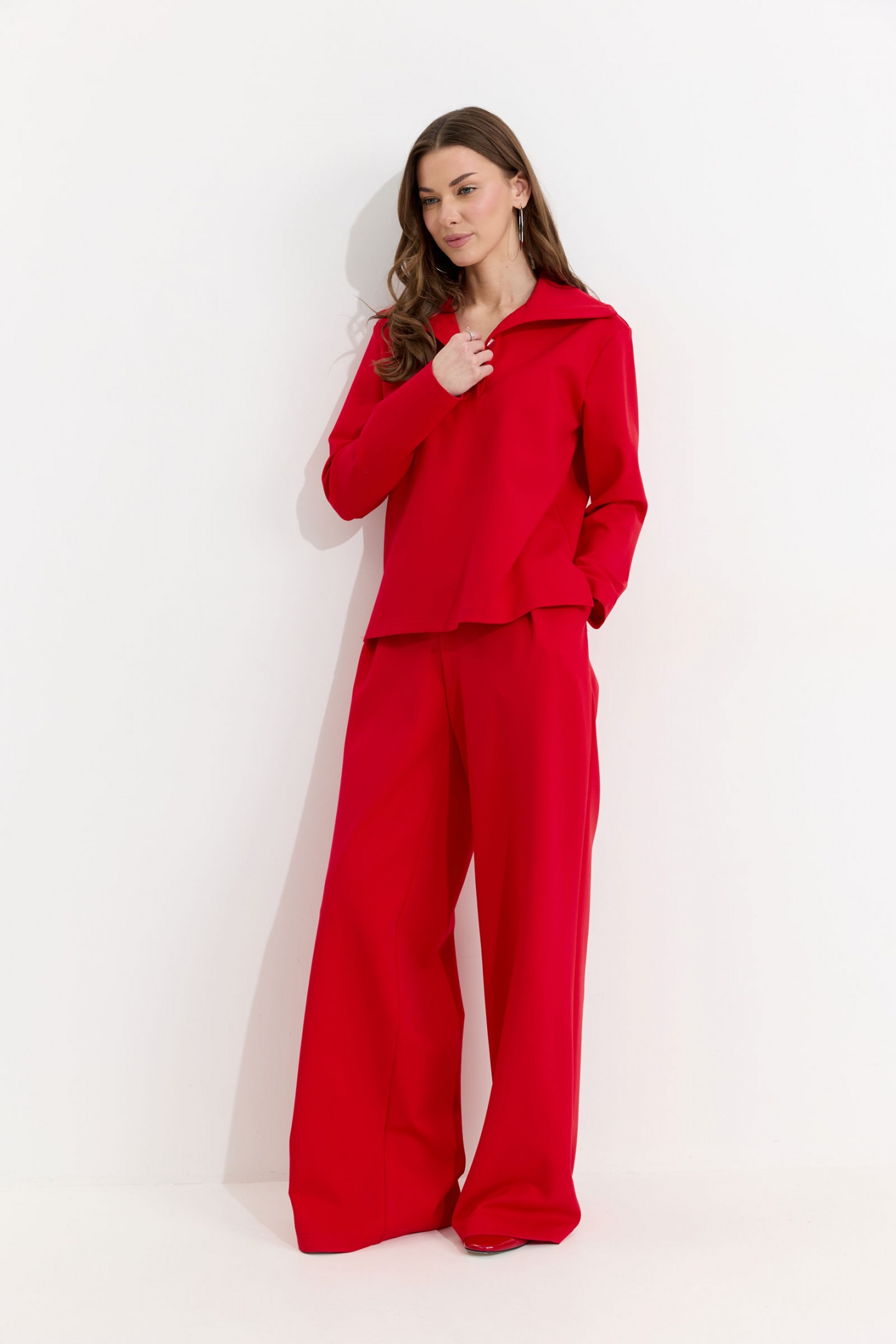 | Описание | Костюм состоящий из джемпера и брюк. Джемпер прямого силуэта из трикотажного полотна. Воротник - широкая стойка. Горловина с застежкой на петлю и пуговицу. Рукав одношовный втачной, чуть спущена линия плеча. По низу джемпера в боковых швах разрезы. Обращаем ваше внимание, что фурнитура может отличаться от фото. Брюки прямого силуэта из трикотажного полотна. По верху брюк притачной пояс, по переду застежка молния в среднем шве, карманы в боковых швах и декоративные складки. На задних половинках брюк прорезные листочки. По задним половинкам брюк на поясе резинка от вытачки до вытачки. Обращаем ваше внимание, что фурнитура может отличаться от фото. |