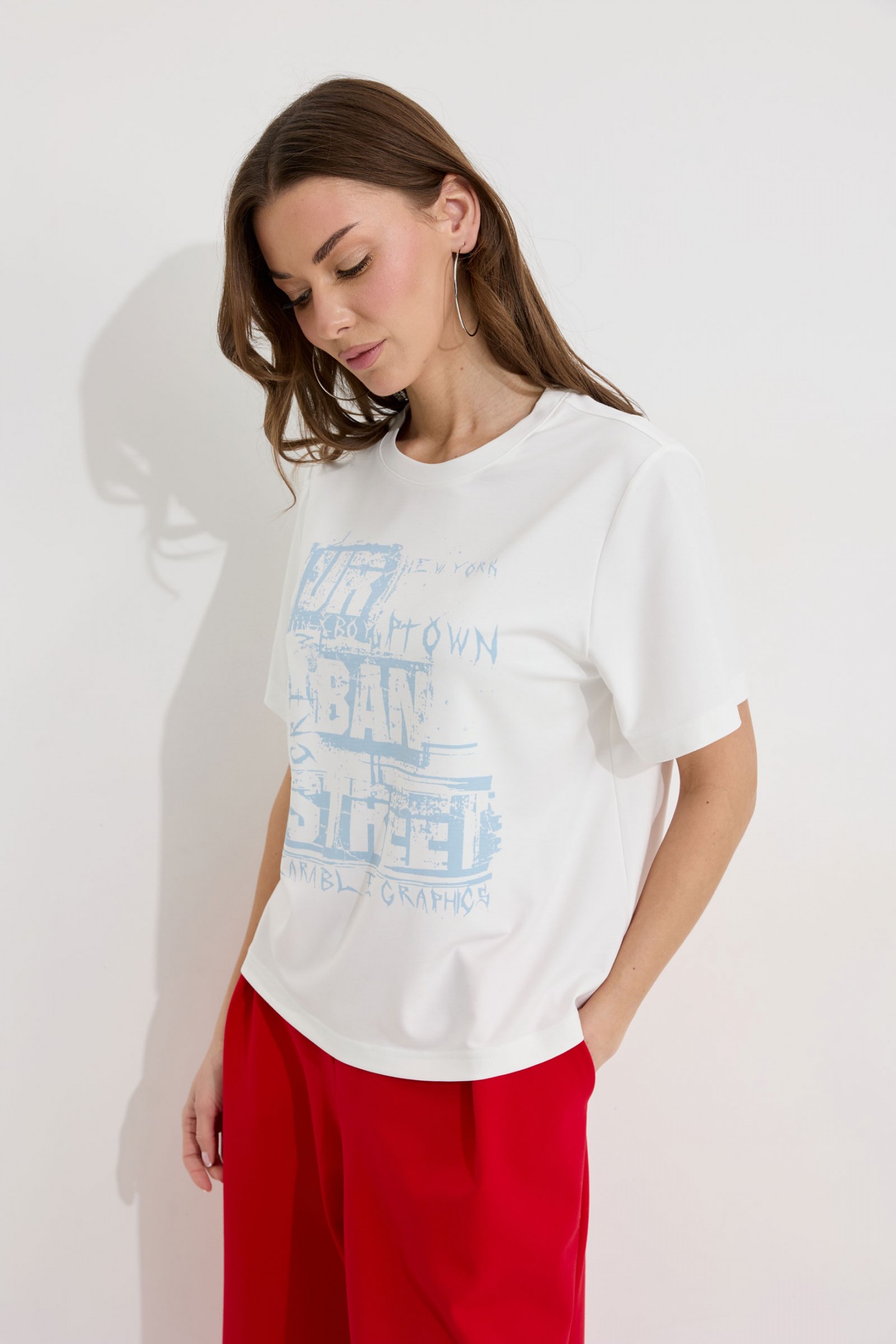 | Описание | Джемпер полуприлегающего силуэта из трикотажного полотна. Горловина округлая. Рукав втачной короткий. По переду дизайнерский принт |