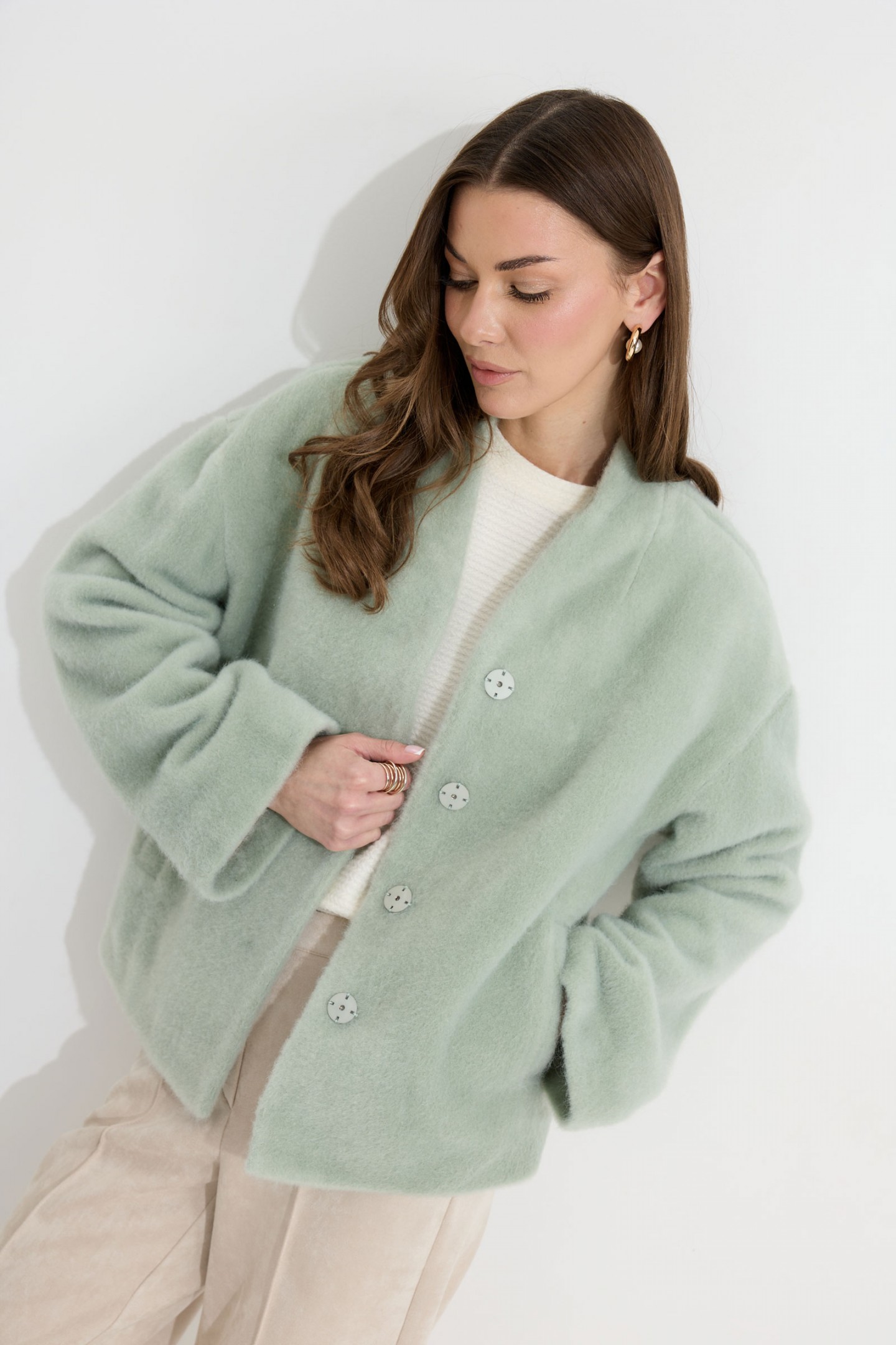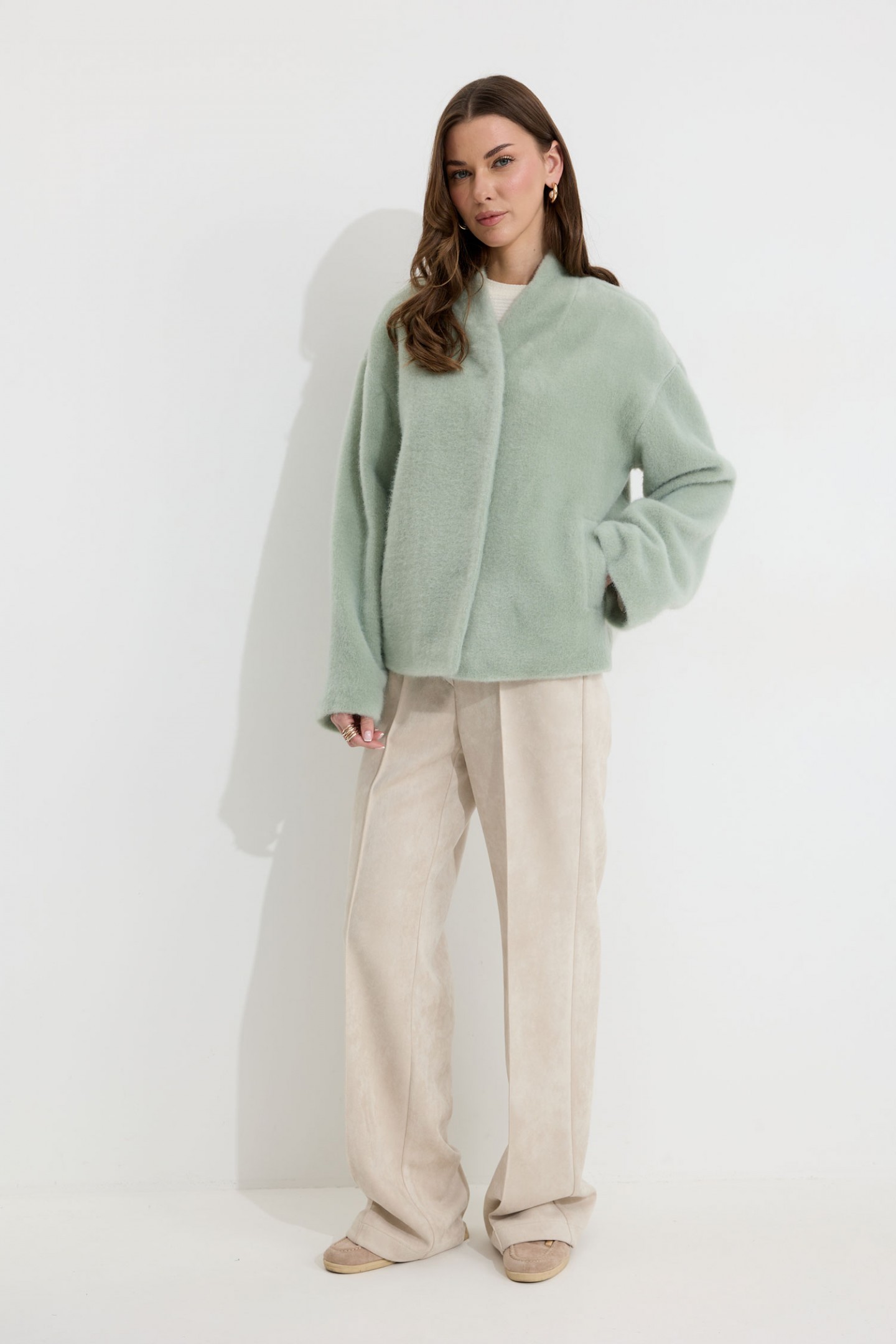 | Описание | Жакет прямого силуэта из трикотажного полотна. Горловина цельнокроеная стойка по центру застежка на кнопки. Рукав со спущенной линией плеча, расширенный книзу. По переду карманы с листочками. Жакет на подкладке. Обращаем ваше внимание, что фурнитура может отличаться от фото. |