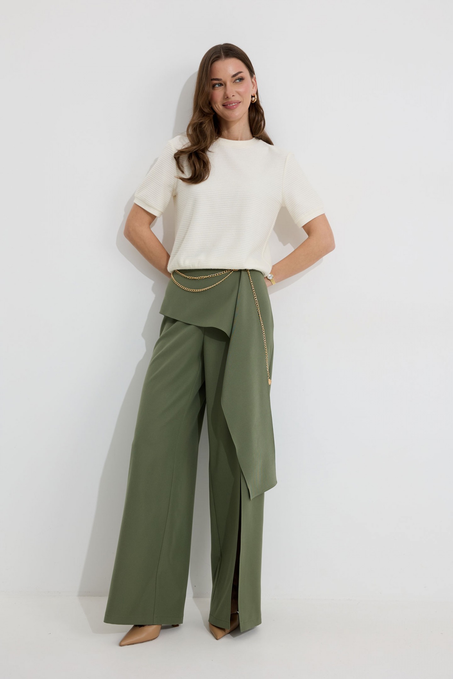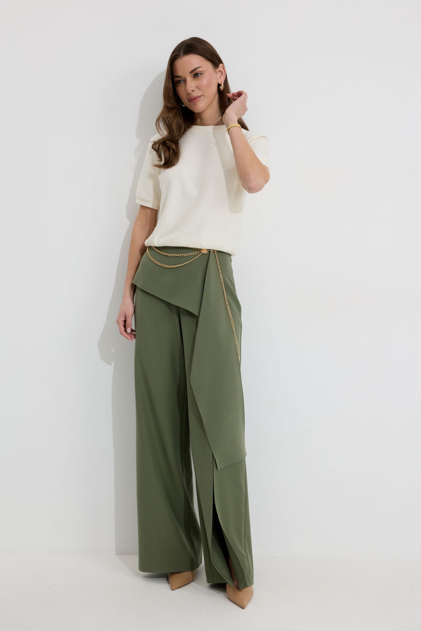| Описание | Джемпер полуприлегающего силуэта из трикотажного полотна. Горловина округлая, рукав втачной, по низу манжета. По низу джемпера притачной пояс. |