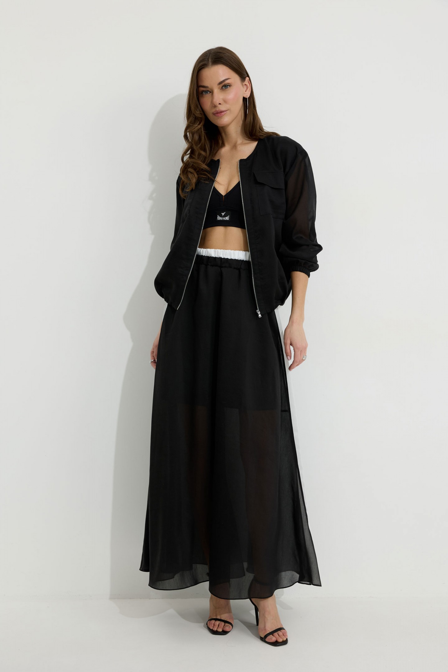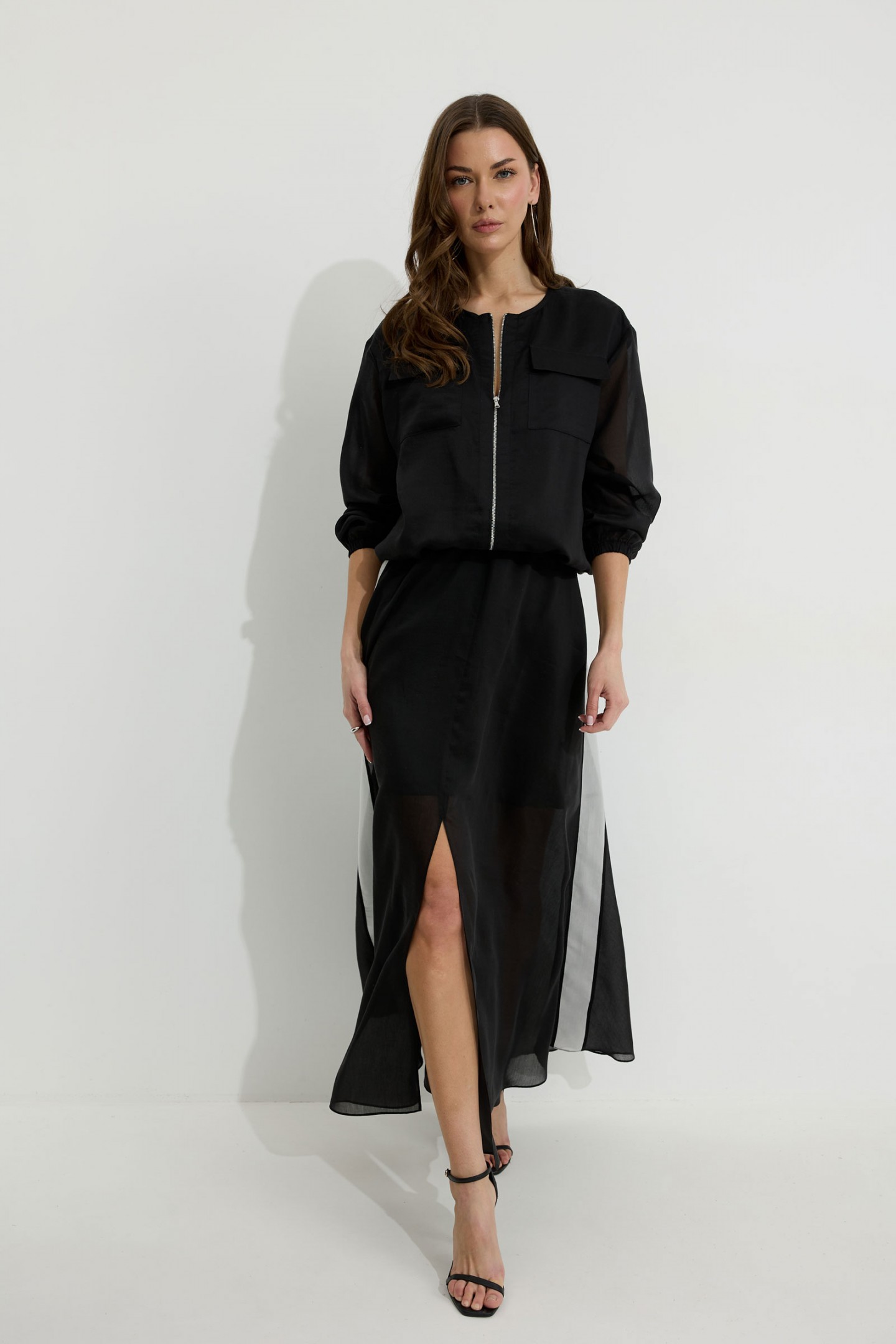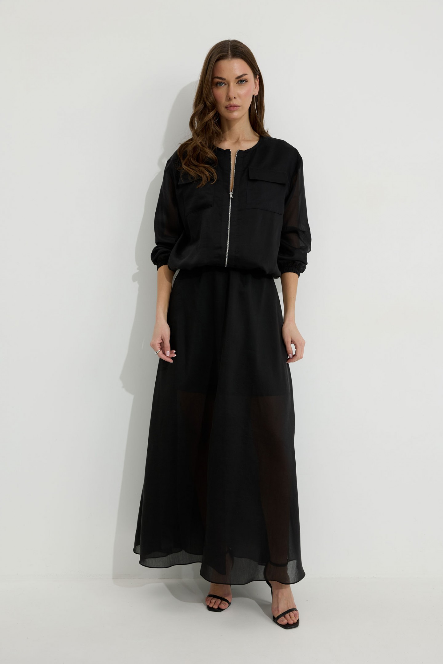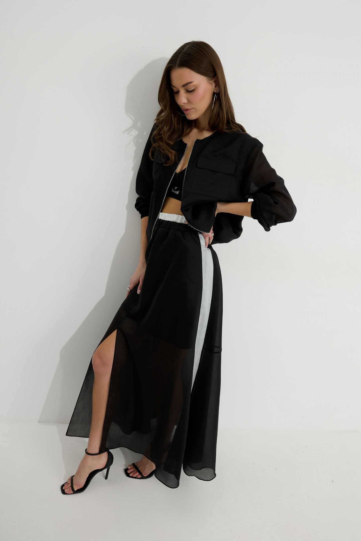 | Описание | Бомбер из вискозной полупрозрачной ткани. Свободного, расширенного силуэта, со спущенной линией плеча. Горловина овальной формы. По нижнему срезу изделия по переду и спинке складки и небольшая сборка на резинку. По переду отрезные планки, застежка на металлическую молнию. На уровне линии груди накладные карманы с клапанами. Рукав длинный, по нижнему срезу с резинкой. Перед и спинка изделия на подкладке из основной ткани. Обращаем Ваше внимание, что фурнитура может незначительно отличаться от фото. |