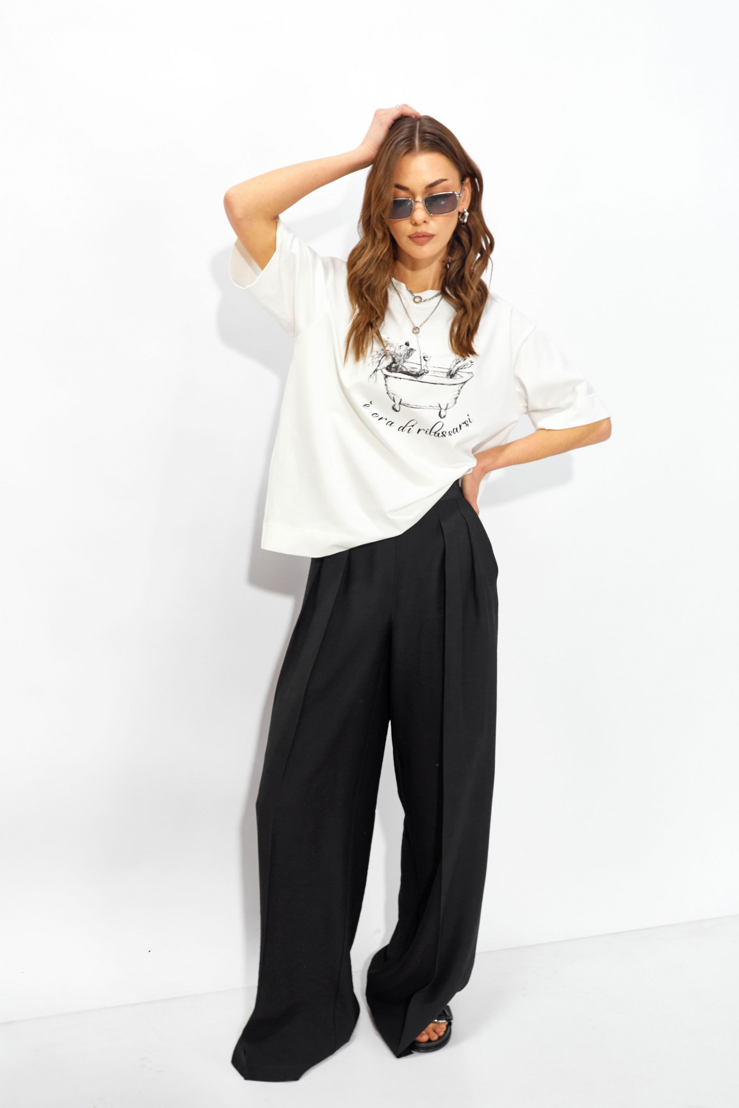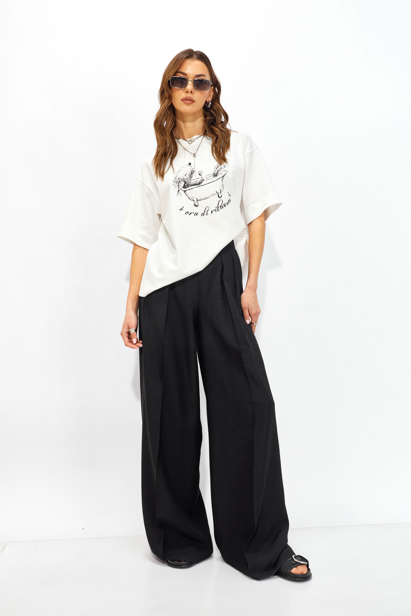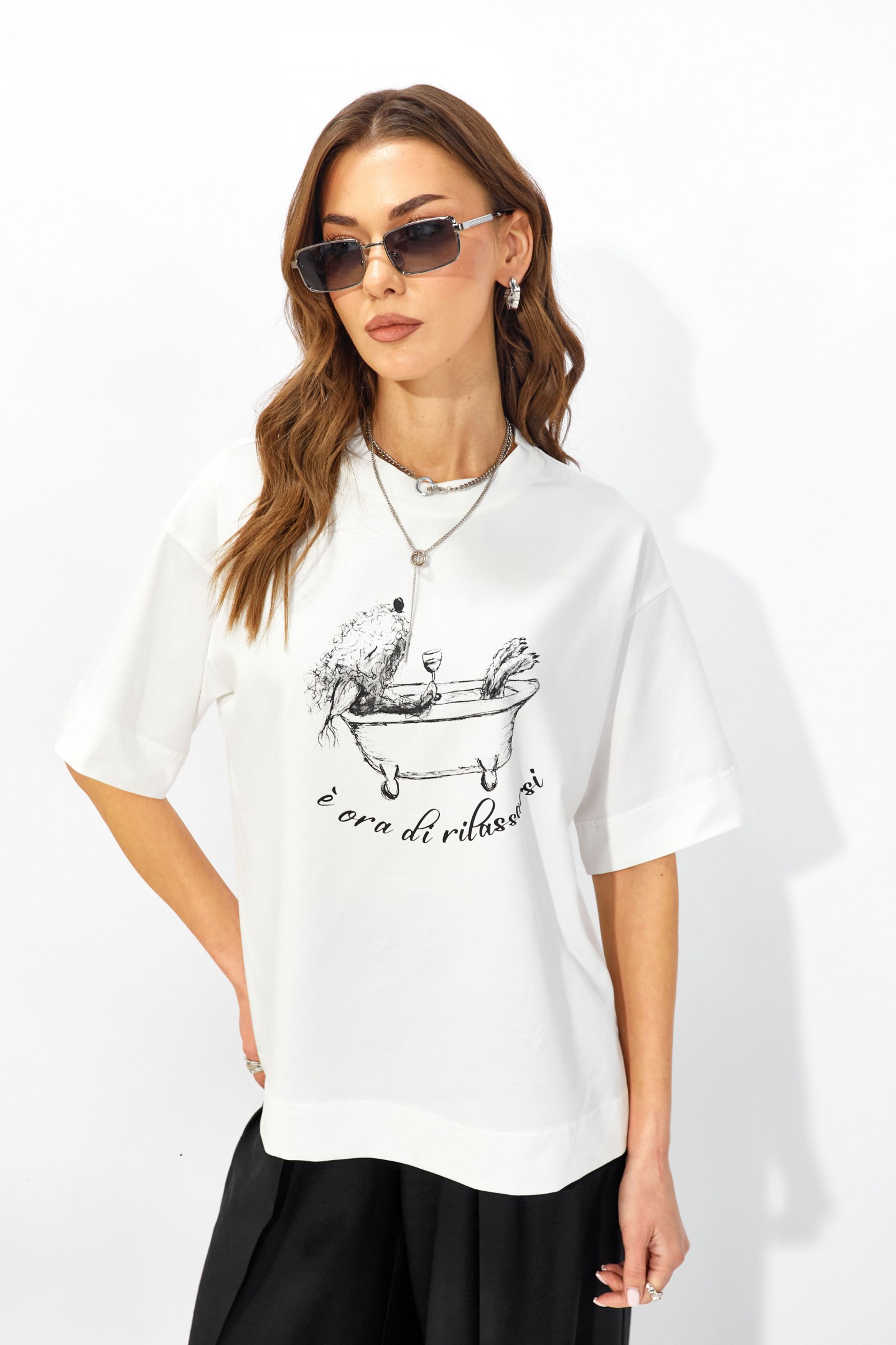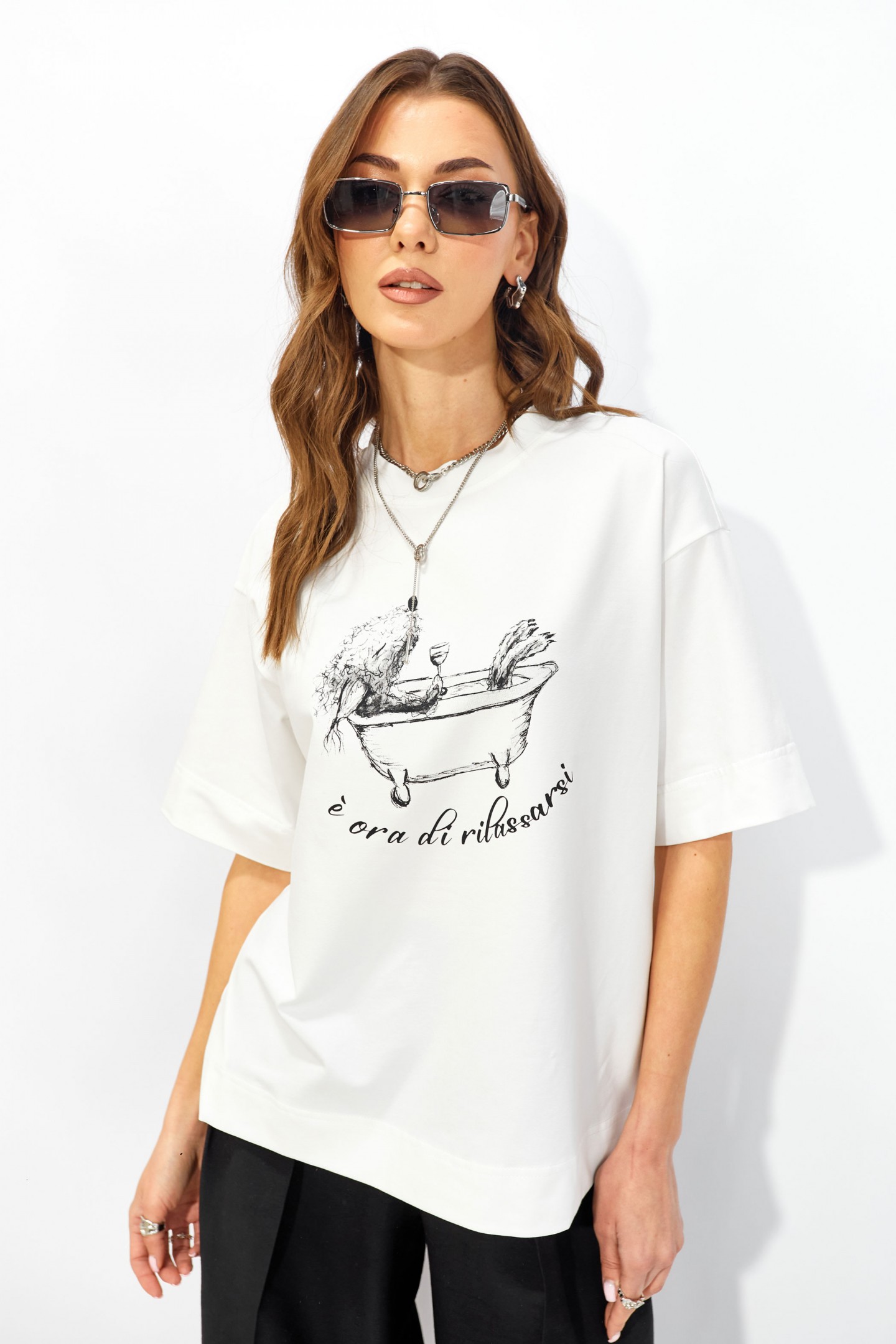 | Описание | Джемпер прямого свободного силуэта из хлопкового трикотажного полотна. Вырез горловины округлый с притачной бейкой. Рукава втачные короткие. По переду дизайнерская печать. |