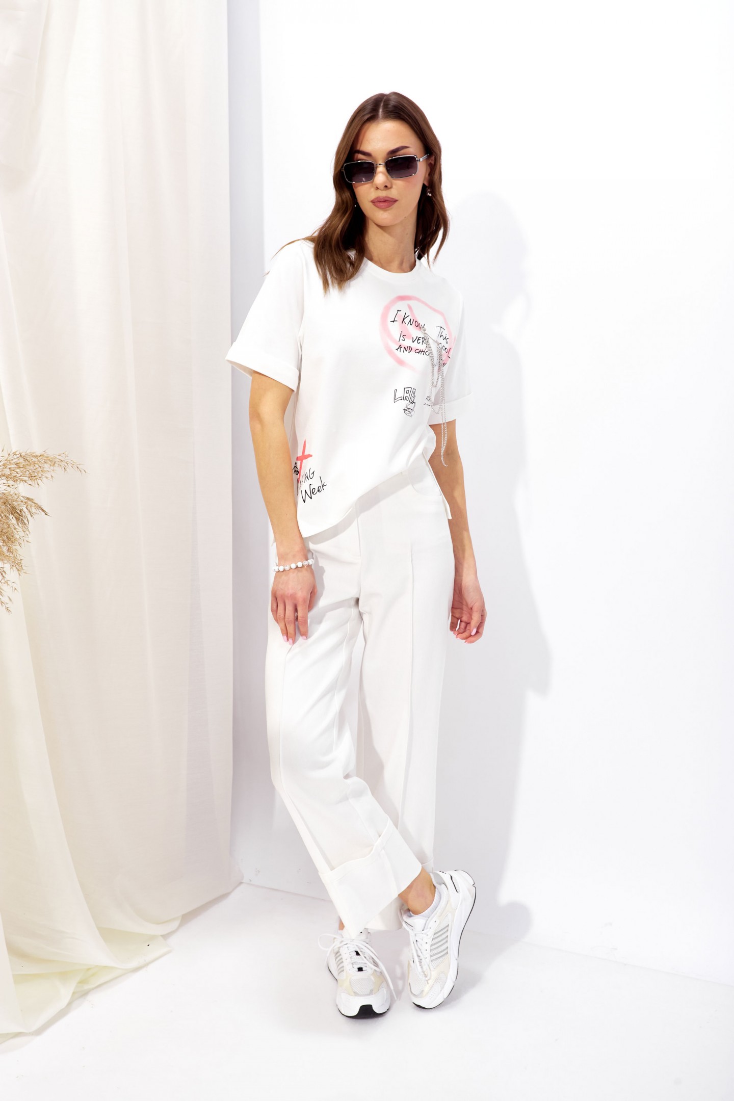 | Описание | Джемпер прямого силуэта из трикотажного полотна. Горловина округлая. Рукав втачной, по низу манжета. По бокам разрезы, спинка длиннее переда. По переду и спинке дизайнерская печать. В комплект входит съемный декор. |
