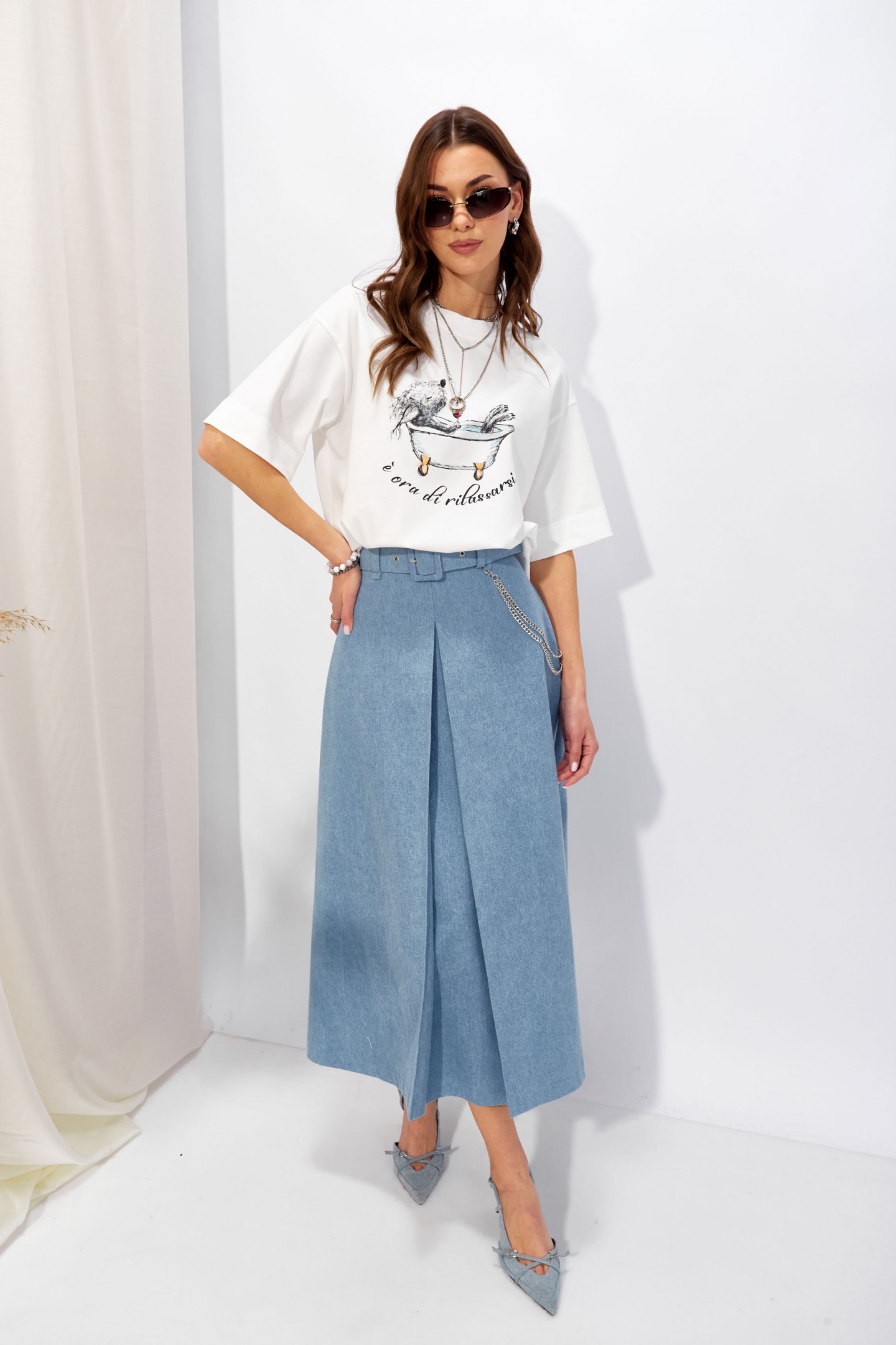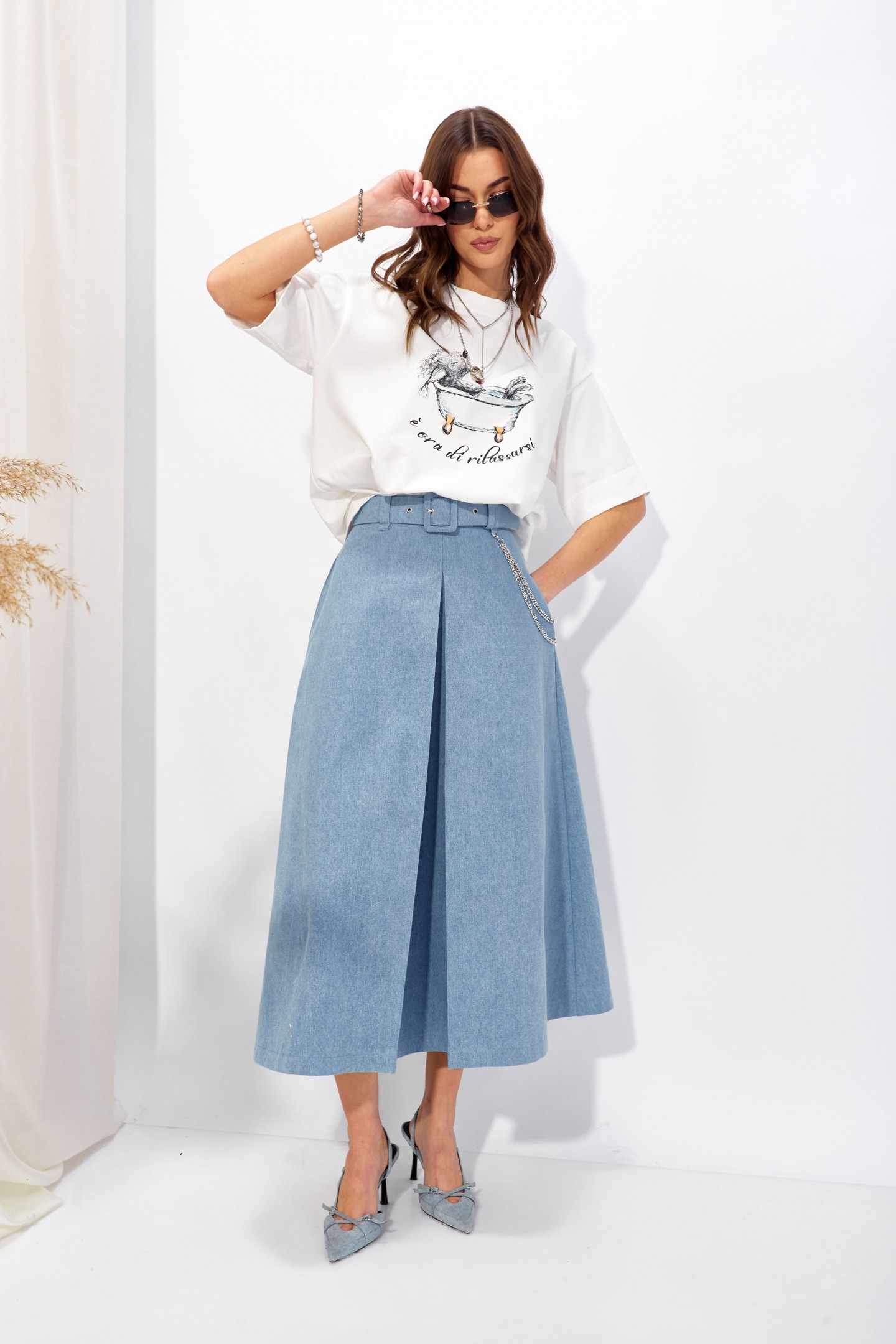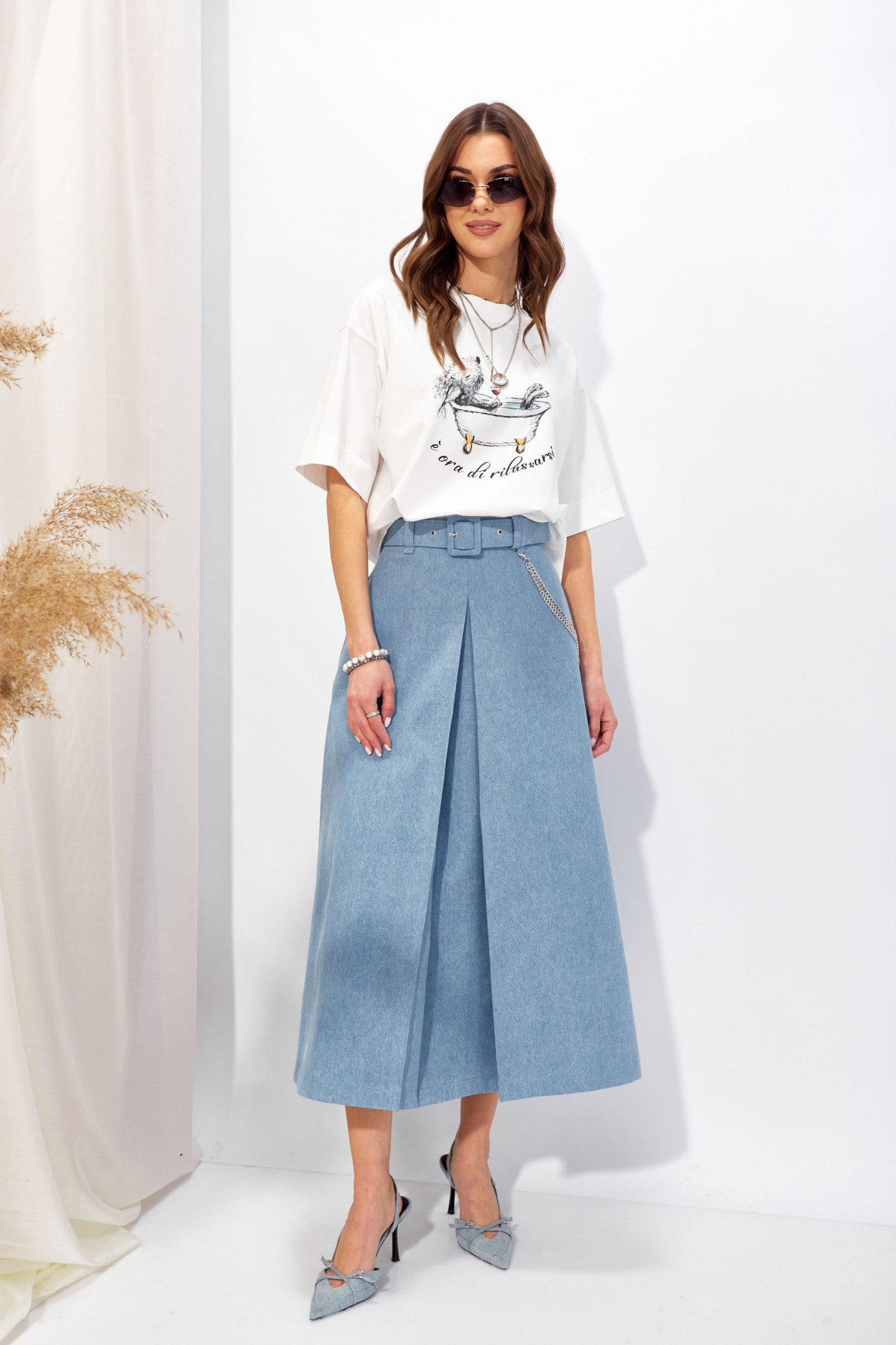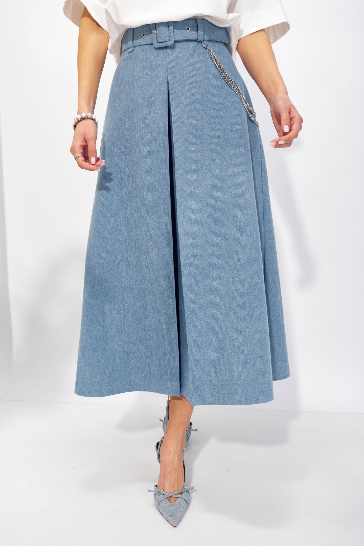| Описание | Юбка расширенная книзу из джинсовой ткани. По верху юбки притачной пояс со шлевками для ремня, на спинке застежка на потайную молнию. По переду и спинке складки. В боковых швах карманы. На спинке в среднем шве потайная молния. В комплект входит съемный ремень. Обращаем ваше внимание, что фурнитура может отличаться от фото. |