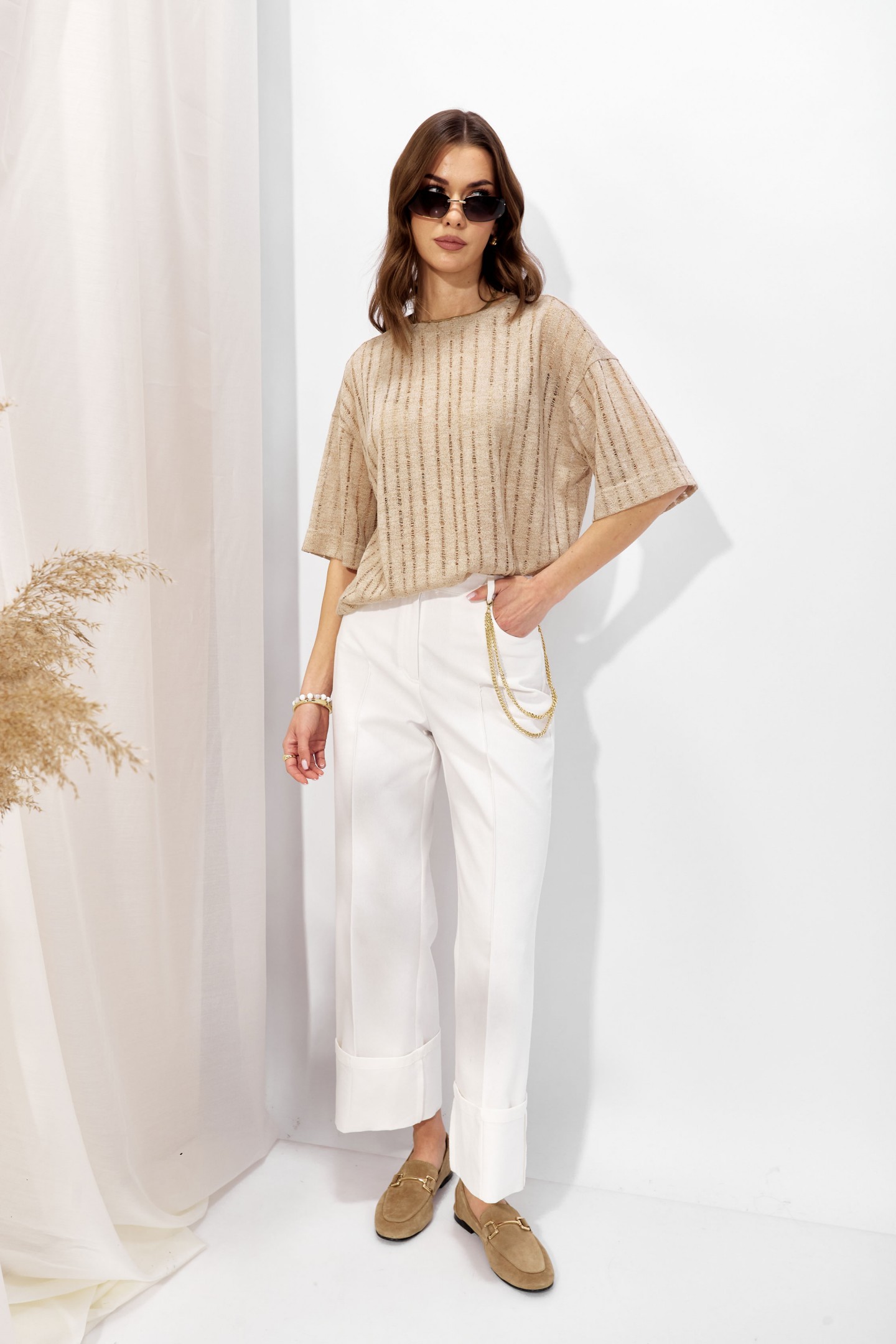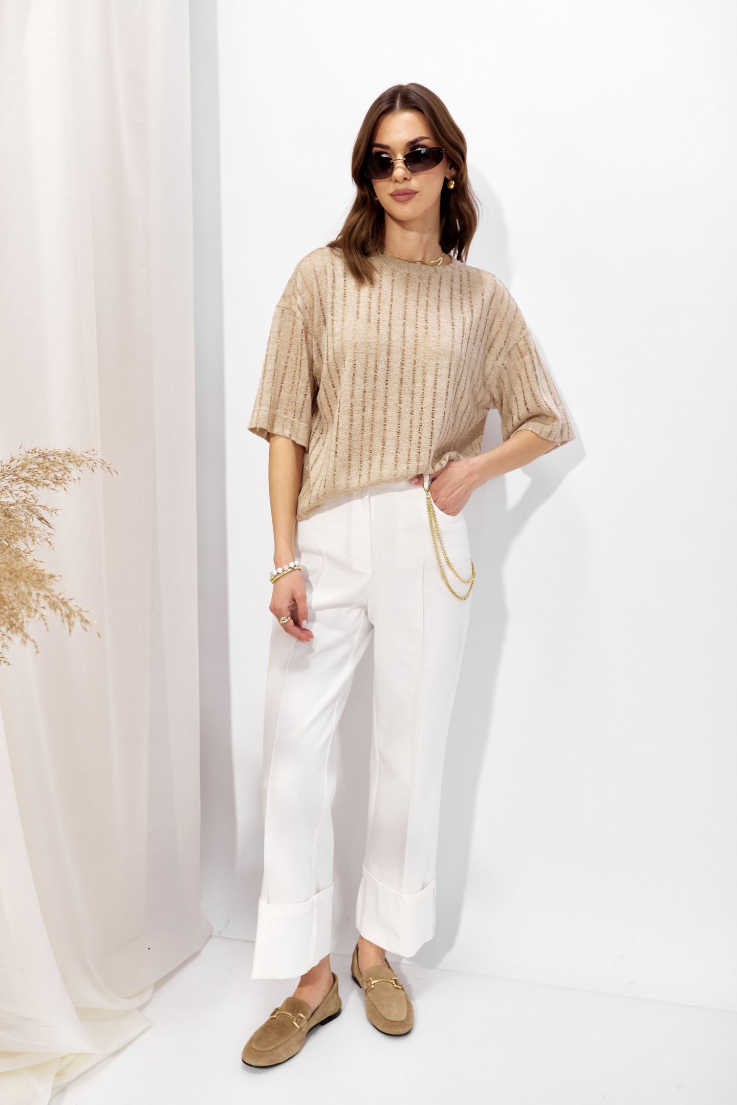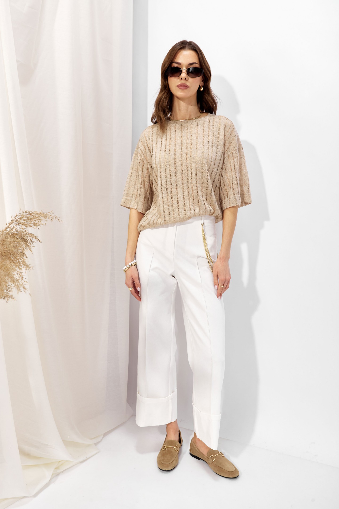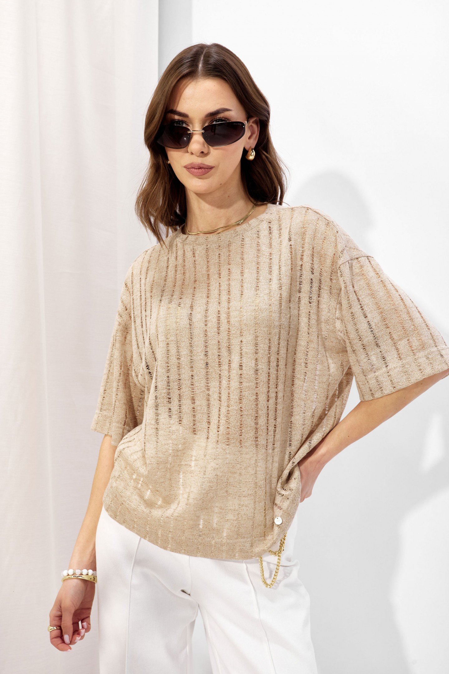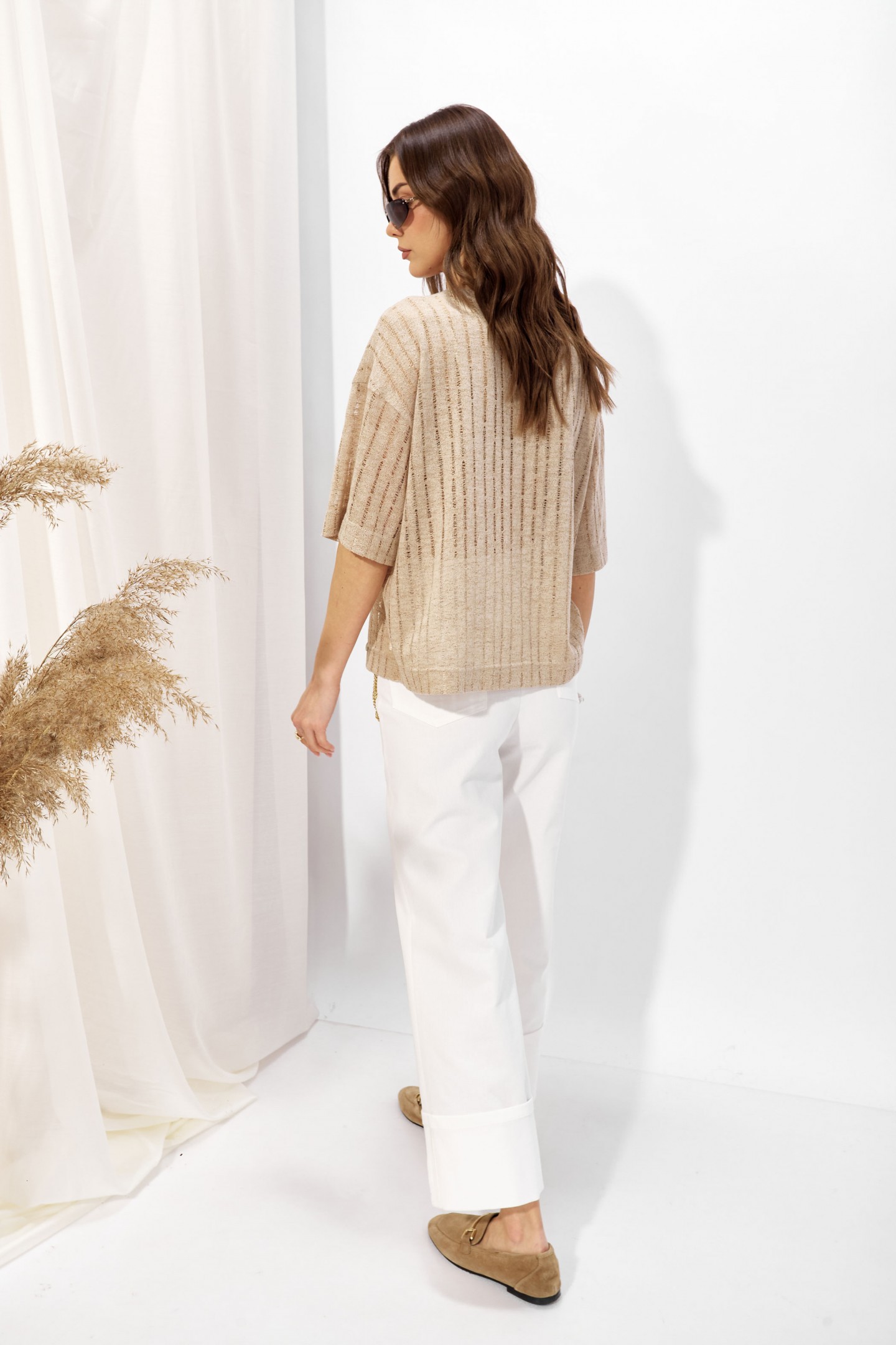 | Описание | Джемпер прямого силуэта из трикотажного полотна. Горловина округлая. Рукав со спущенной линией плеча длиной до локтя. |