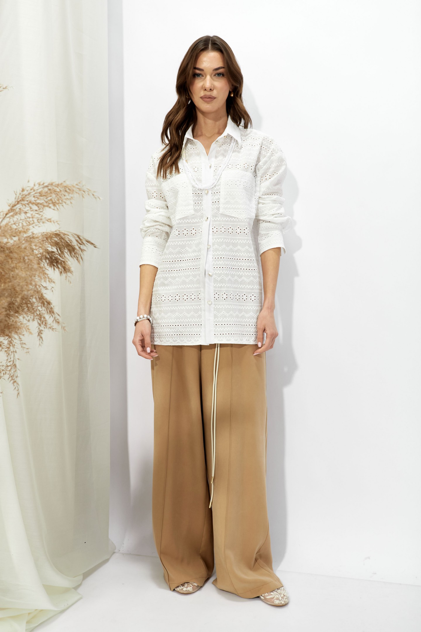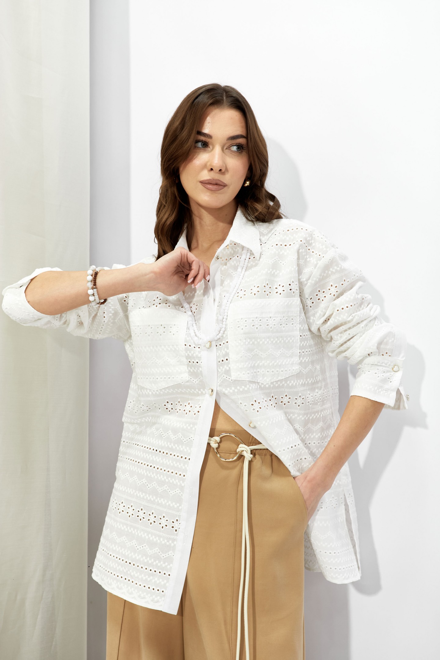 | Описание | Блузка прямого силуэта из ришелье. Воротник рубашечного типа с центральной застежкой на петли и пуговицы. Рукав втачной длинный, по низу манжета на петли и пуговицы. По переду нагрудные карманы. На спинке кокетка и складки. По низу блузки в боковых швах разрезы. Обращаем ваше внимание, что фурнитура может отличаться от фото. |