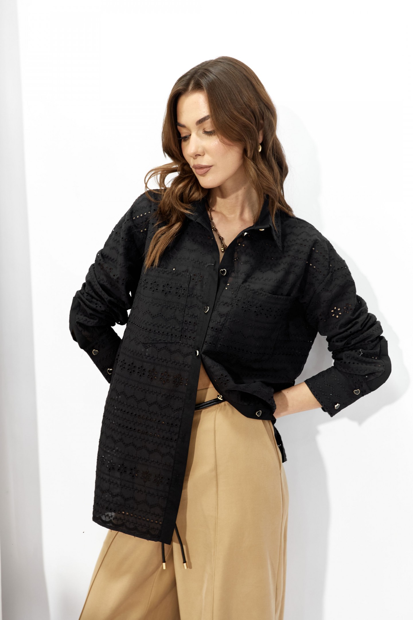 | Описание | Блузка прямого силуэта из ришелье. Воротник рубашечного типа с центральной застежкой на петли и пуговицы. Рукав втачной длинный, по низу манжета на петли и пуговицы. По переду нагрудные карманы. На спинке кокетка и складки. По низу блузки в боковых швах разрезы. Обращаем ваше внимание, что фурнитура может отличаться от фото. |