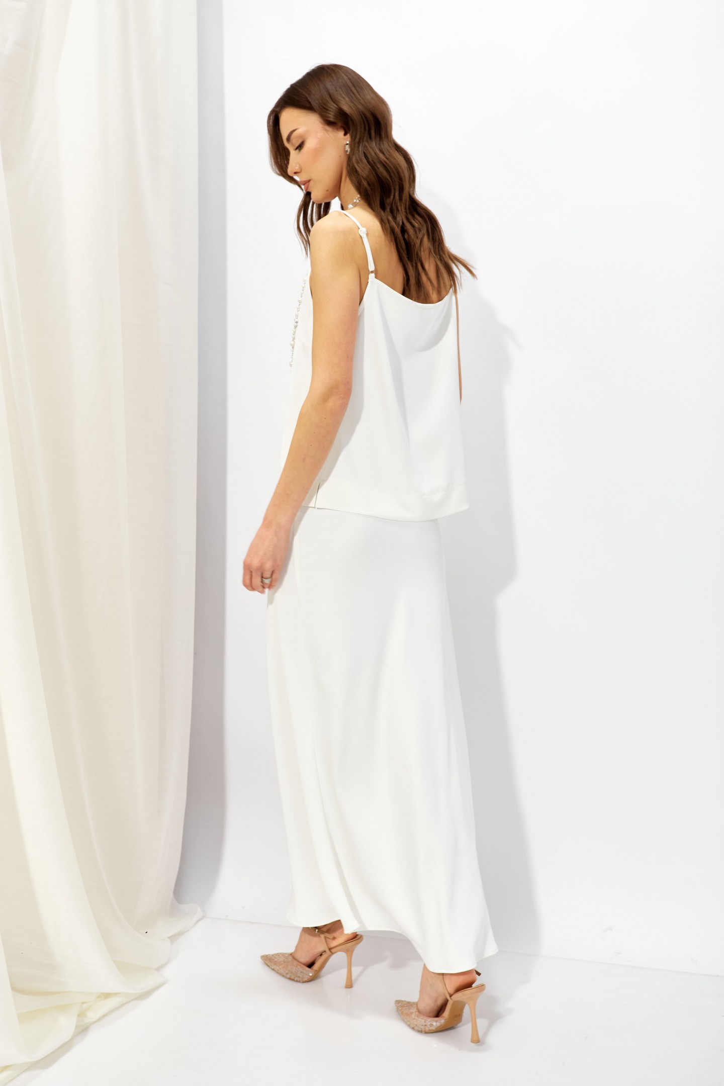 | Описание | Базовый топ в бельевом стиле из струящейся ткани прямого силуэта с V-образным вырезом на тонких регулируемых бретелях. Его можно носить отдельно или в многослойных образах. |