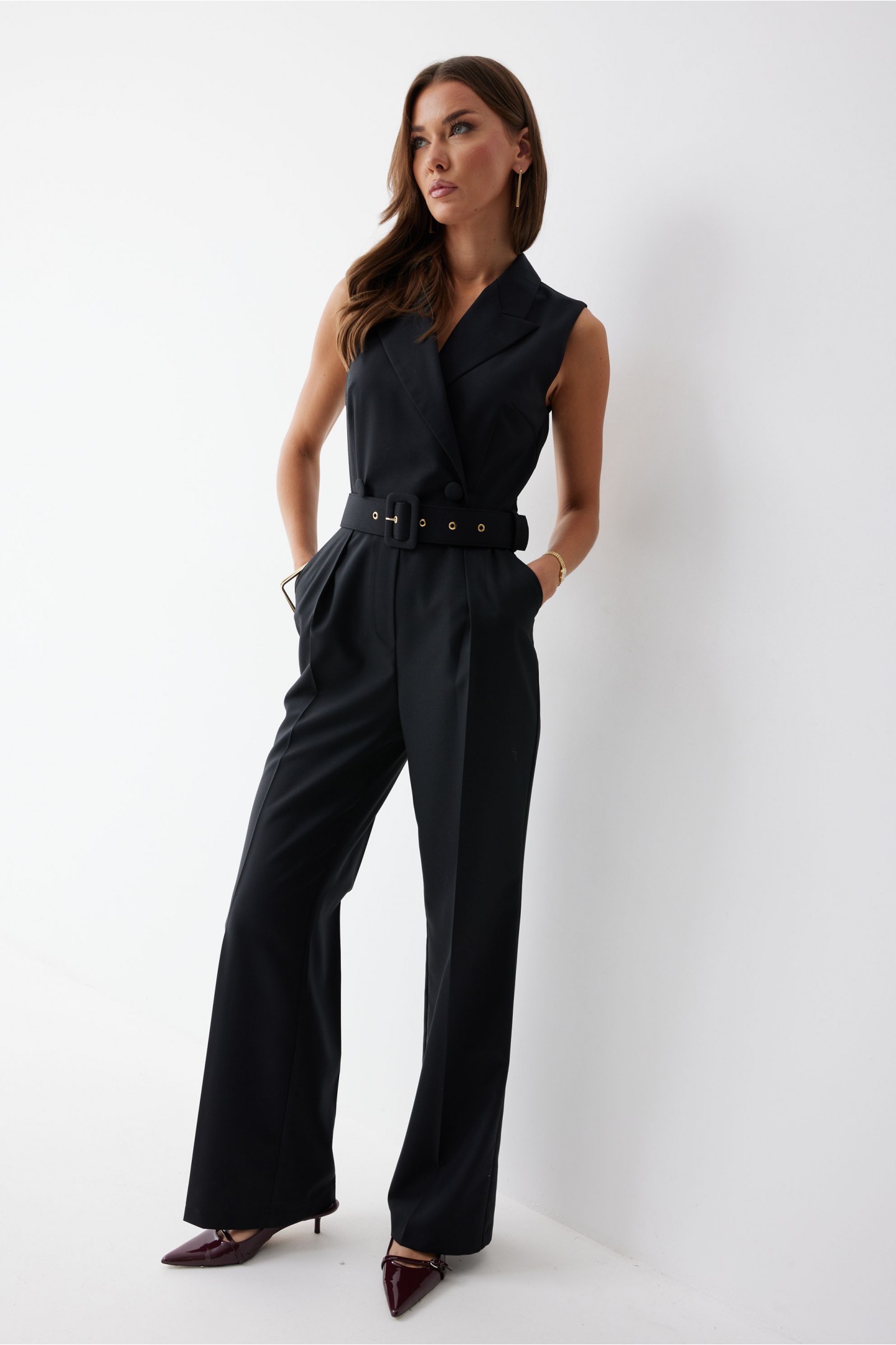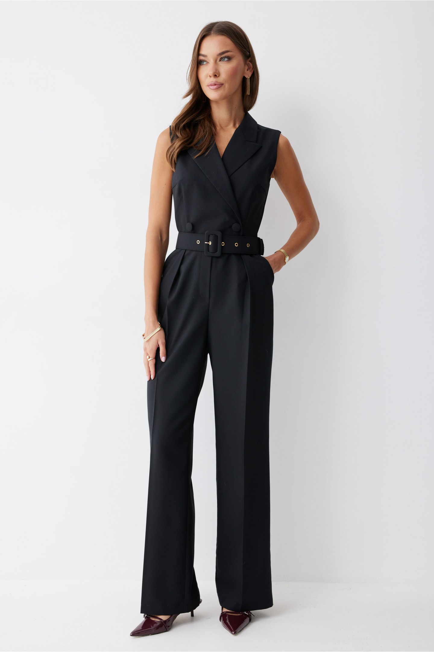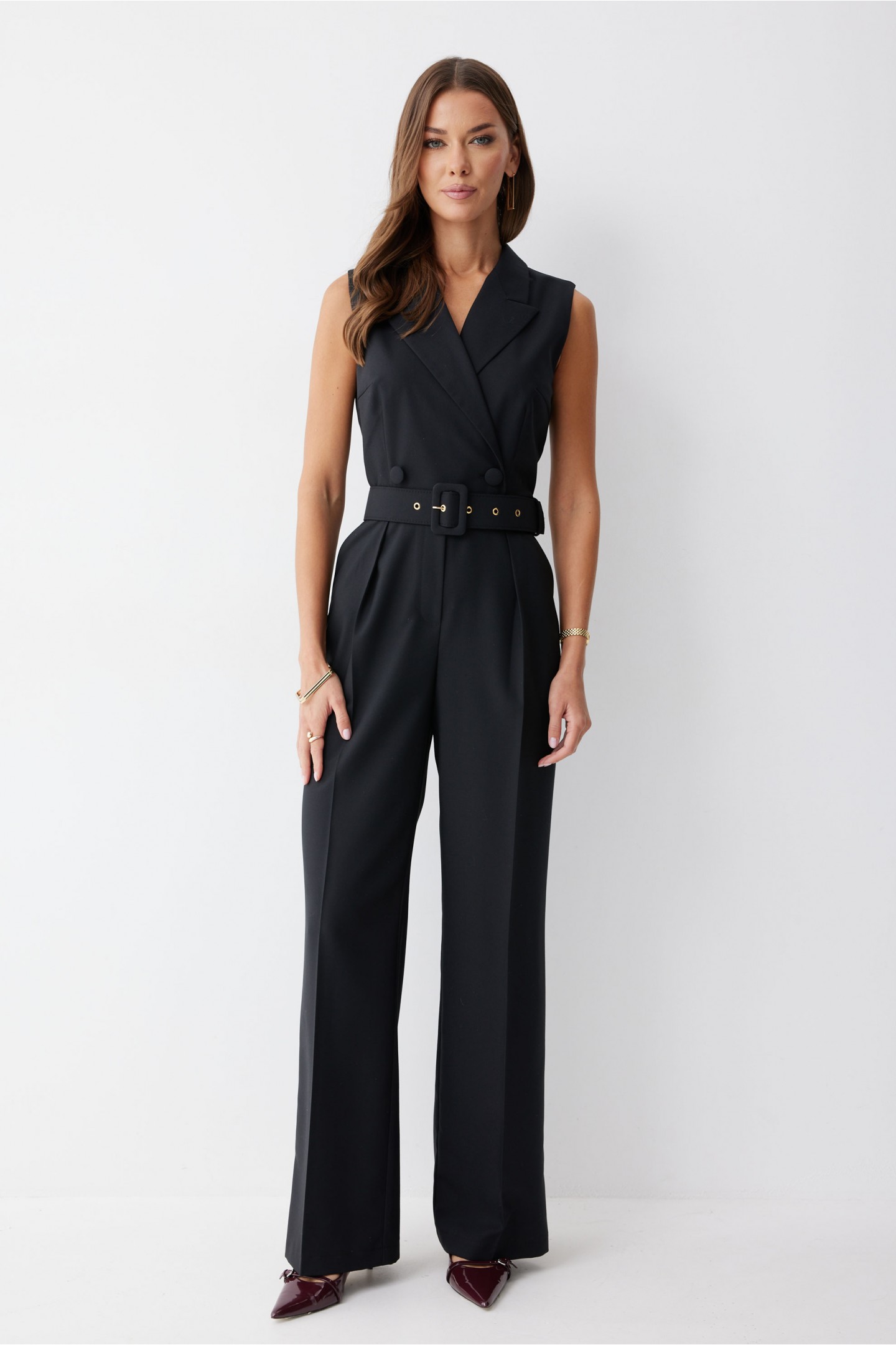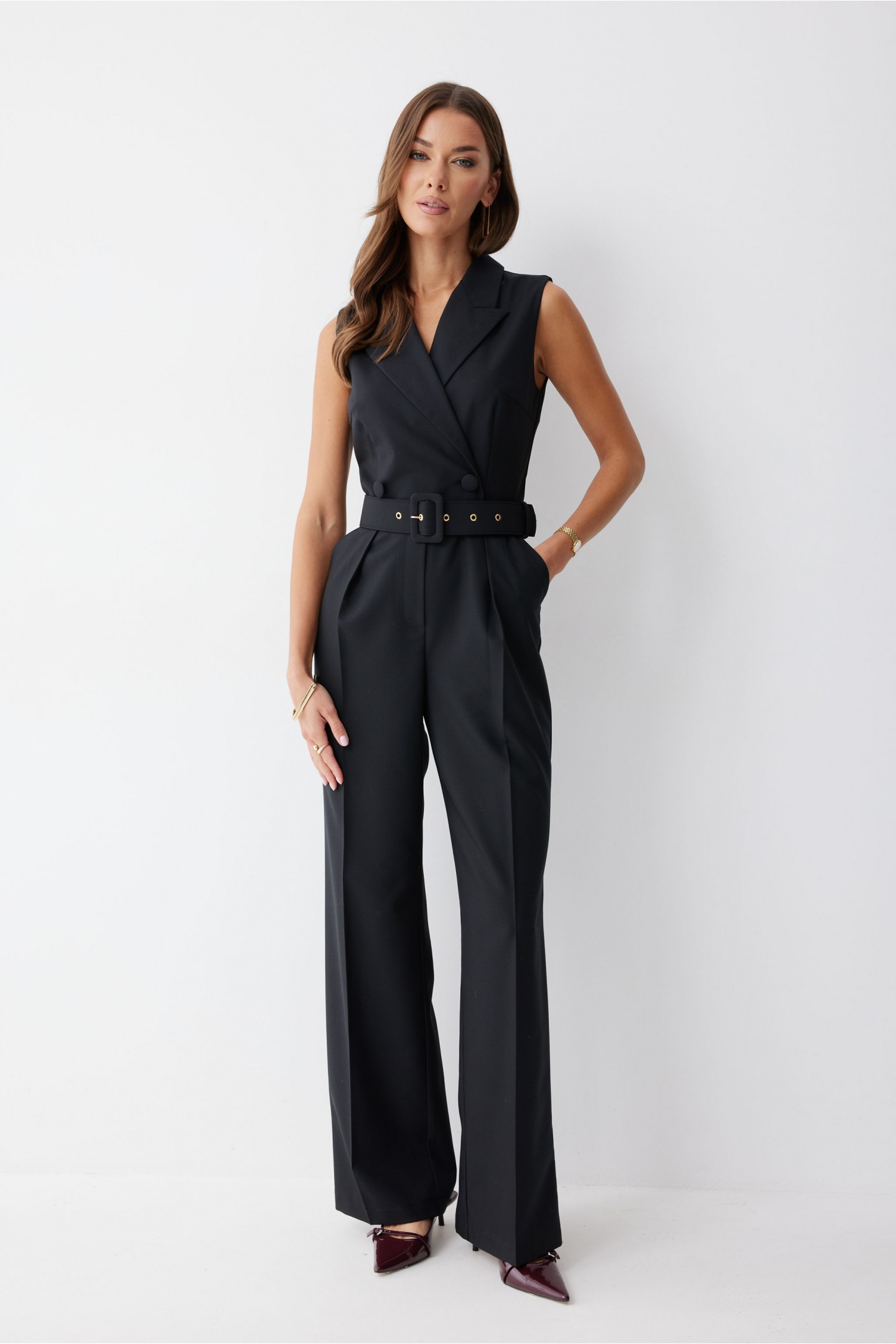 | Описание | Комбинезон полуприлегающего силуэта из костюмной ткани. Воротник пиджачного типа. Комбинезон отрезной по линии талии, верхняя часть комбинезона на запах. На спинке в среднем шве застежка на потайную молнию. В боковых швах карманы. По переду на лифе талиевые и нагрудные вытачки, на брюках декоративные складки. На спинке лифа талиевые вытачки. В комплект входит ремень. Обращаем ваше внимание, что фурнитура может отличаться от фото. |