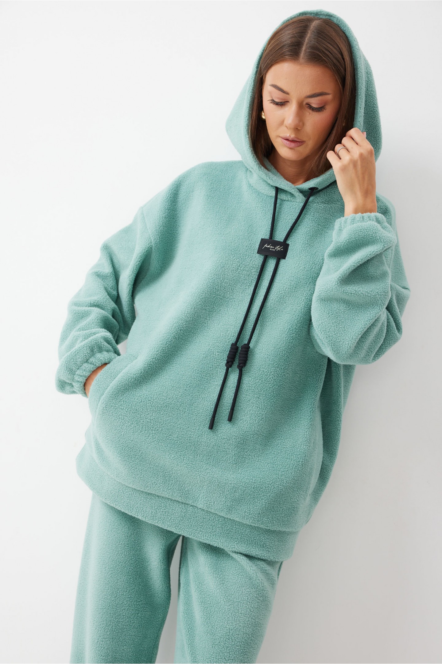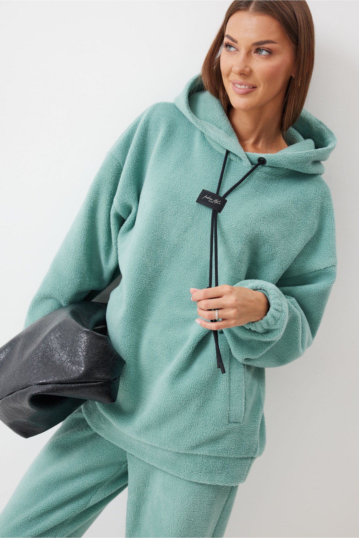 Описание Джемпер прямого силуэта из комфортного трикотажного полотна. Горловина обработана капюшоном. Рукав со спущенной линией плеча, по низу на резинке. По низу джемпера притачной пояс. По переду декоративная нашивка и шнур. Обращаем ваше внимание, что фурнитура может отличаться от фото.