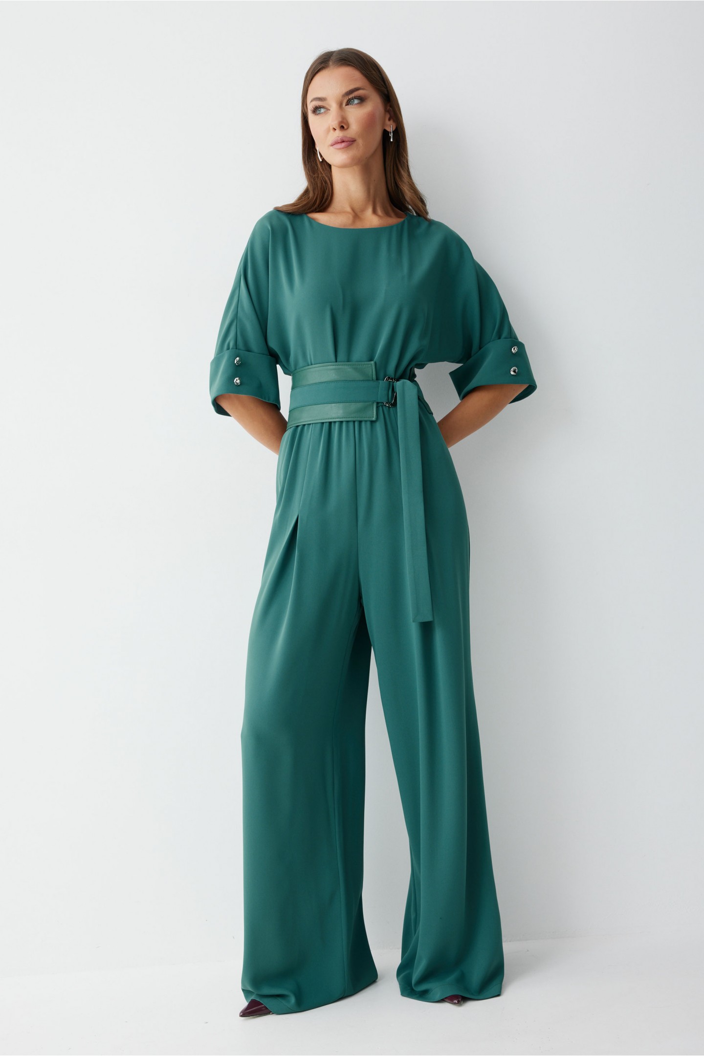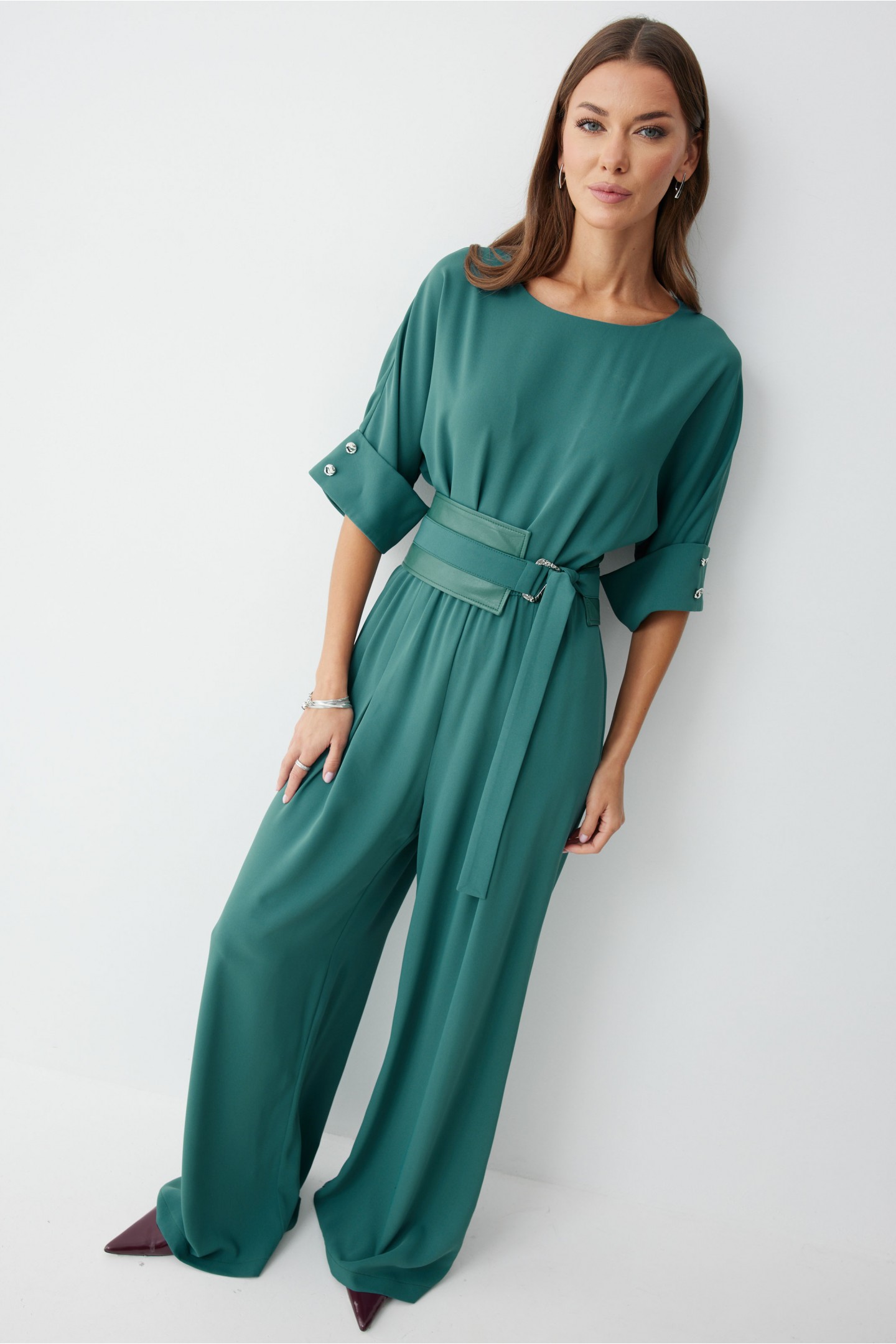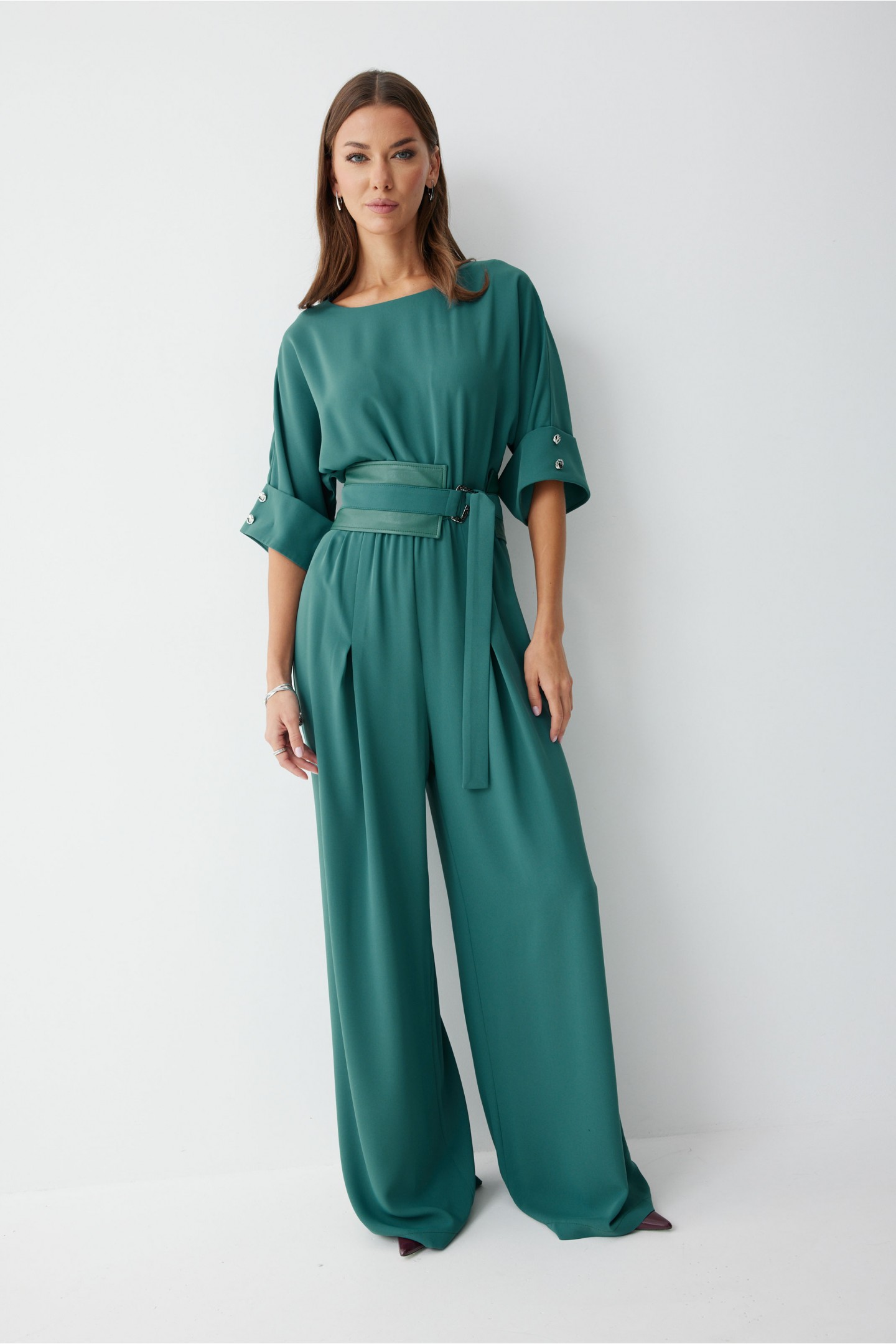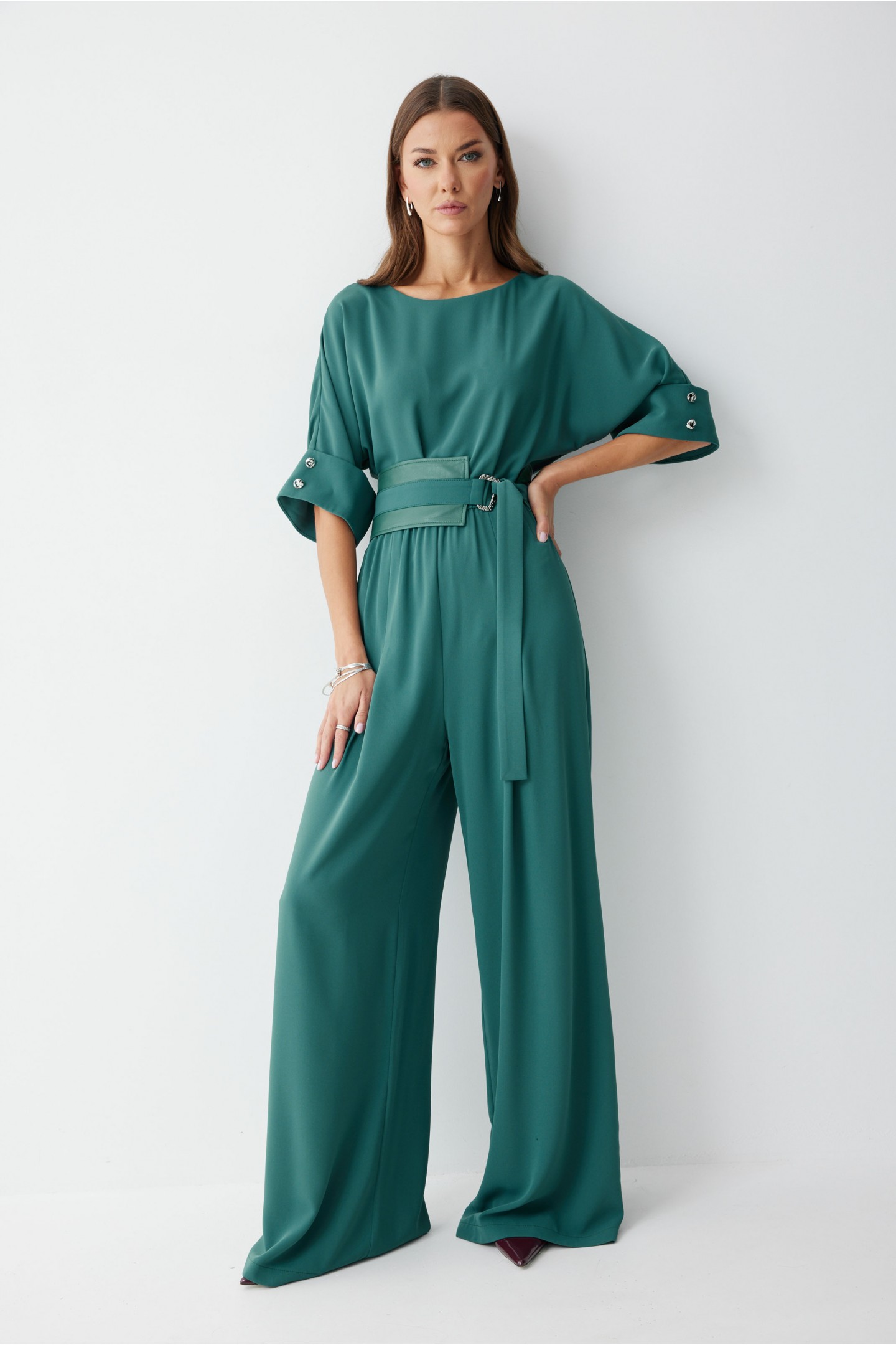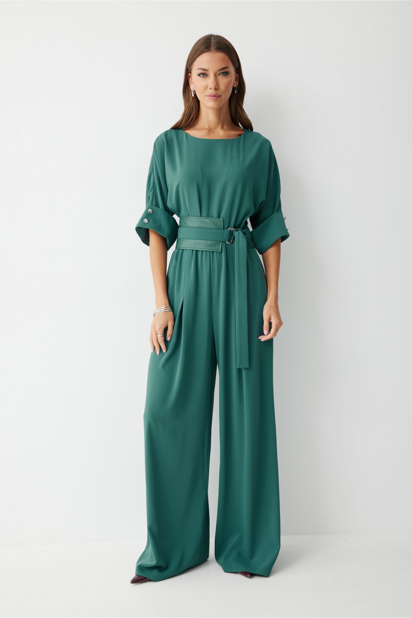 | Описание | Комбинезон полуприлегающего силуэта, из струящейся ткани. Брюки прямого силуэта, со складками по переду. Комбинезон отрезной, по линии талии на резинке. Рукав цельнокроеный на манжете, длиной до локтя. Горловина округлая. В комплект входит пояс скомбинированный из экокожи и основной ткани. Обращаем ваше внимание, что фурнитура может незначительно отличаться от фото. |