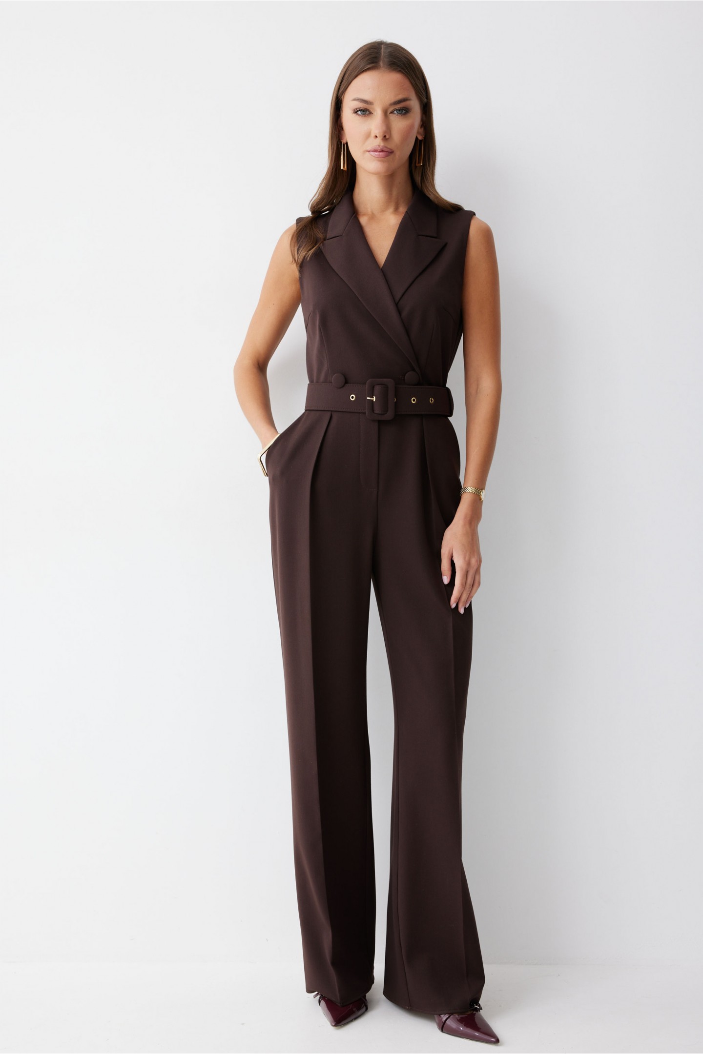 | Описание | Комбинезон полуприлегающего силуэта из костюмной ткани. Воротник пиджачного типа. Комбинезон отрезной по линии талии, верхняя часть комбинезона на запах. На спинке в среднем шве застежка на потайную молнию. В боковых швах карманы. По переду на лифе талиевые и нагрудные вытачки, на брюках декоративные складки. На спинке лифа талиевые вытачки. В комплект входит ремень. Обращаем ваше внимание, что фурнитура может отличаться от фото. |