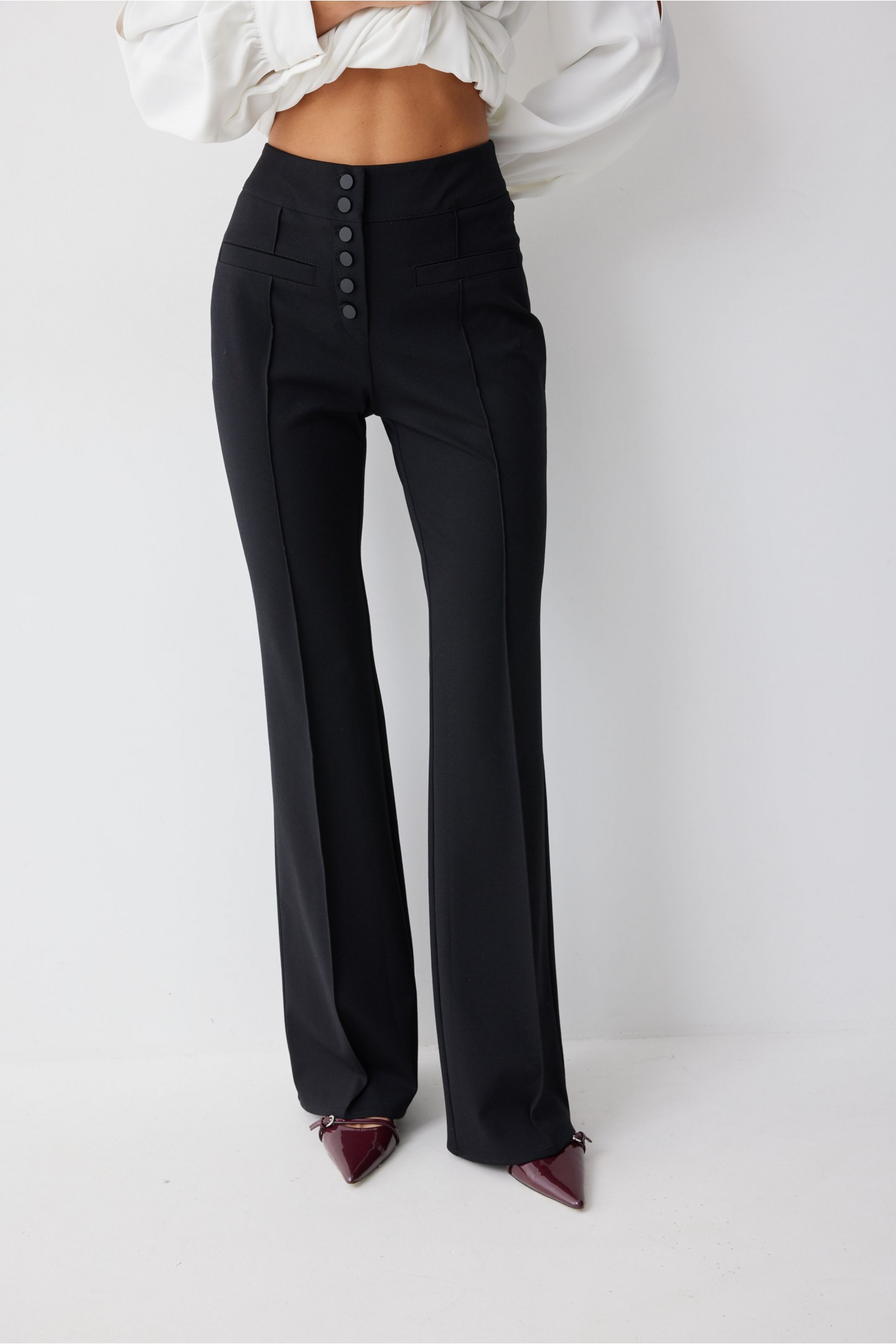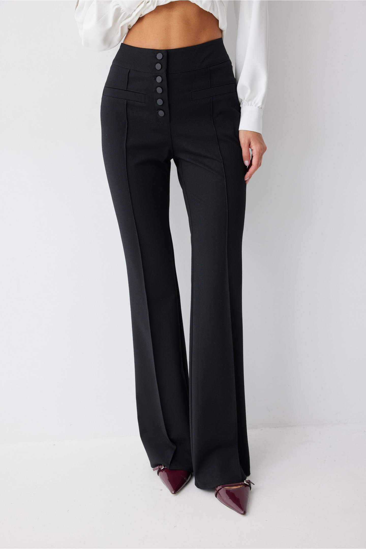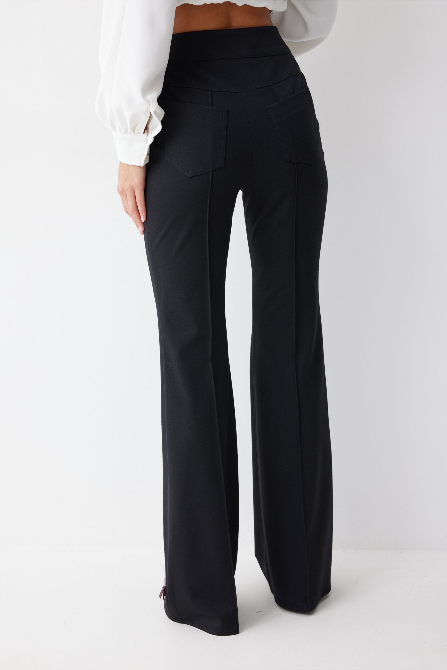 | Описание | Брюки прямого силуэта с защипами из трикотажного полотна. По верху брюк притачной пояс и центральная застежка на петли и пуговицы. На передних половинках защипы и декоративные листочки. На задних половинках брюк накладные карманы. Обращаем ваше внимание, что фурнитура может отличаться от фото. |