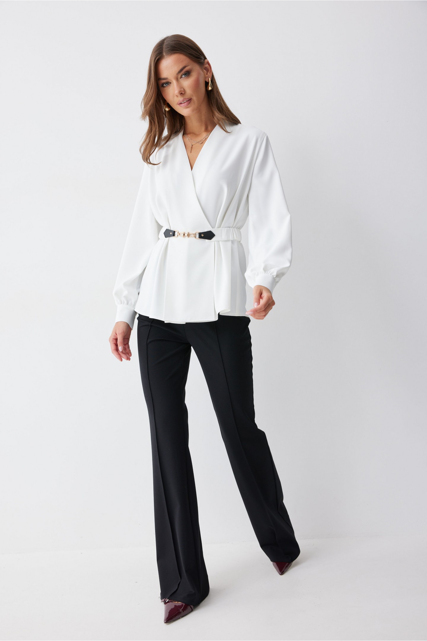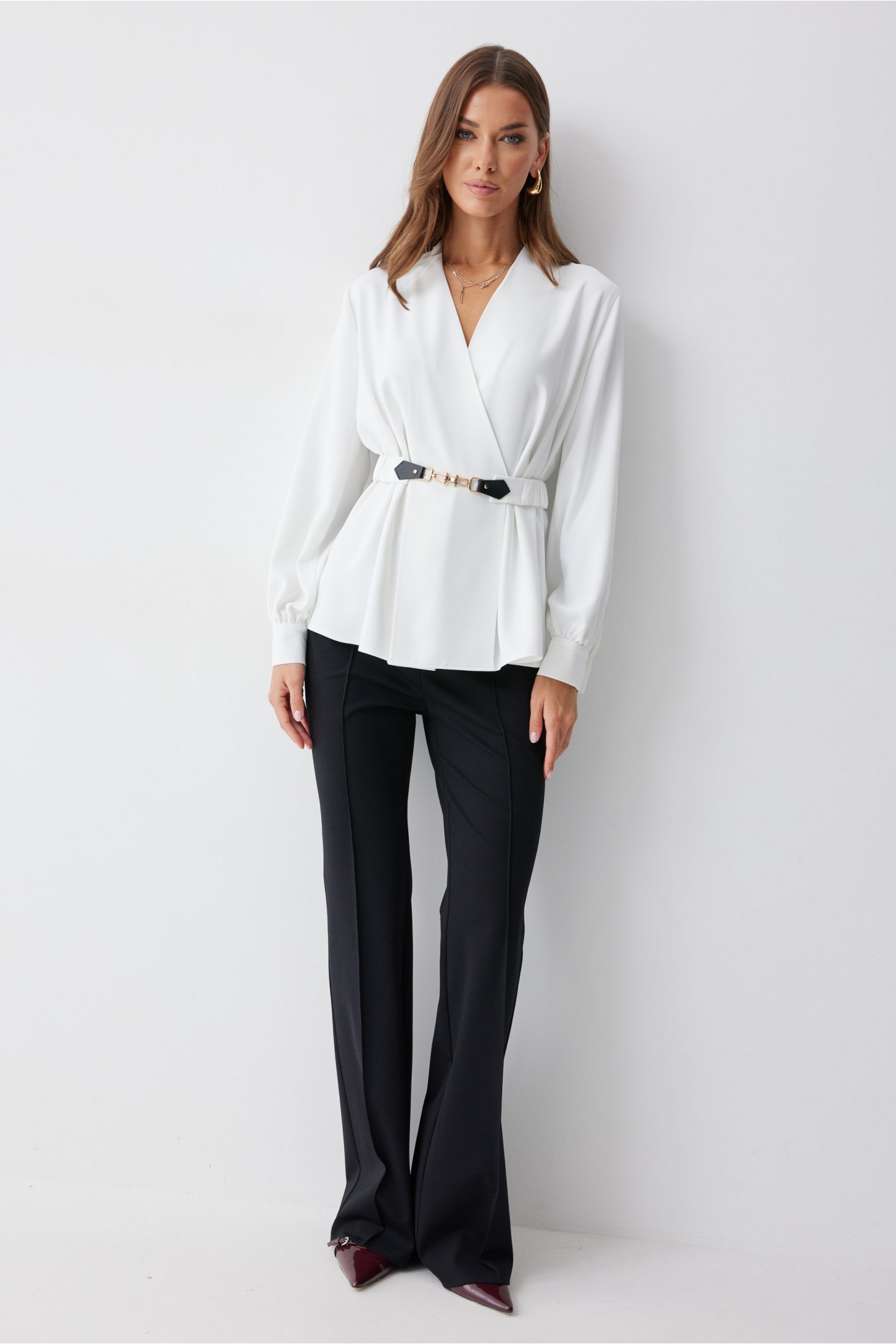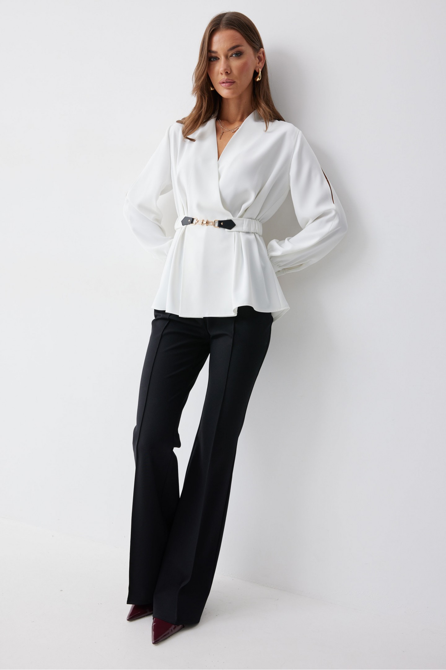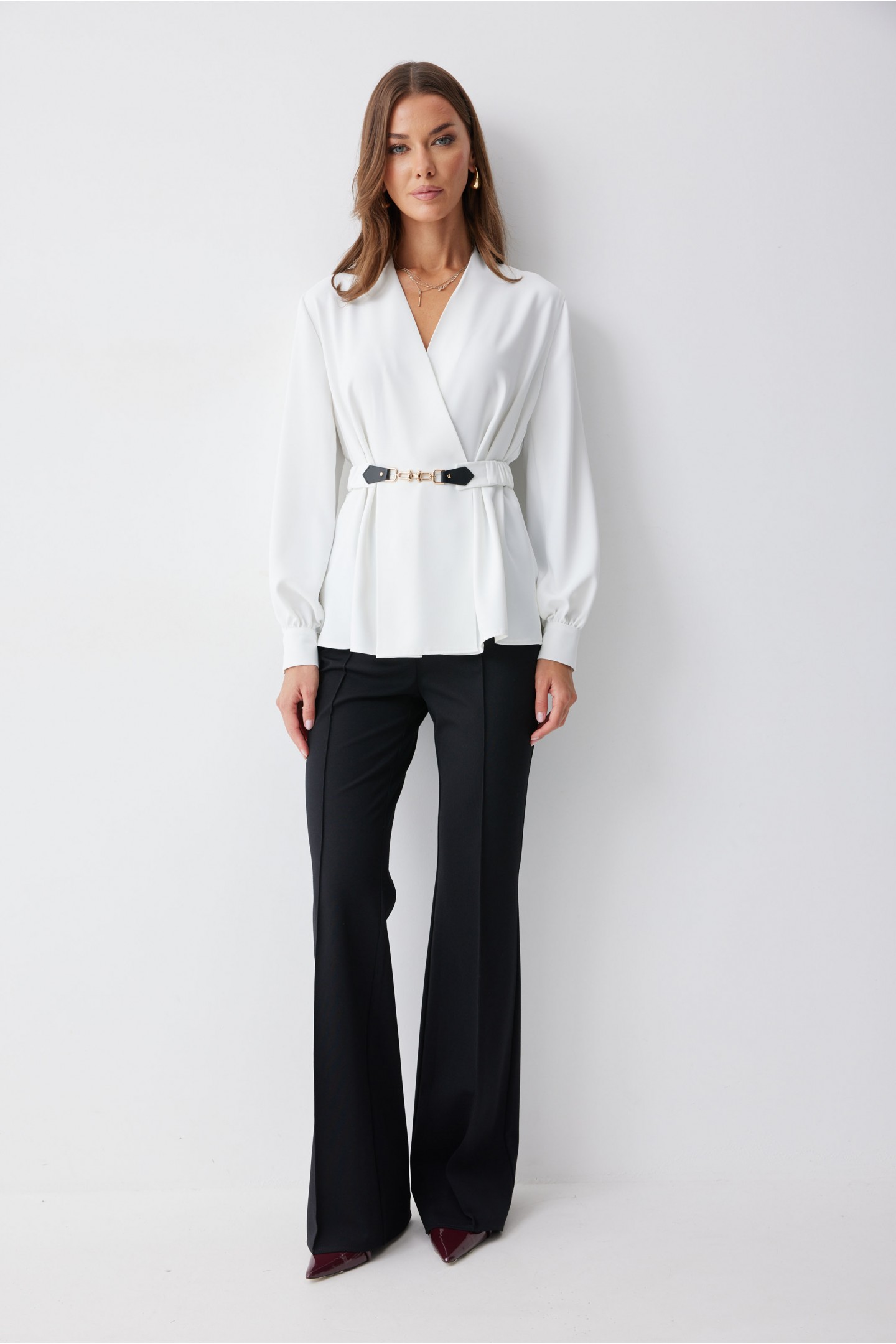 | Описание | Брюки прямого силуэта с защипами из трикотажного полотна. По верху брюк притачной пояс и центральная застежка на петли и пуговицы. На передних половинках защипы и декоративные листочки. На задних половинках брюк накладные карманы. Обращаем ваше внимание, что фурнитура может отличаться от фото. |