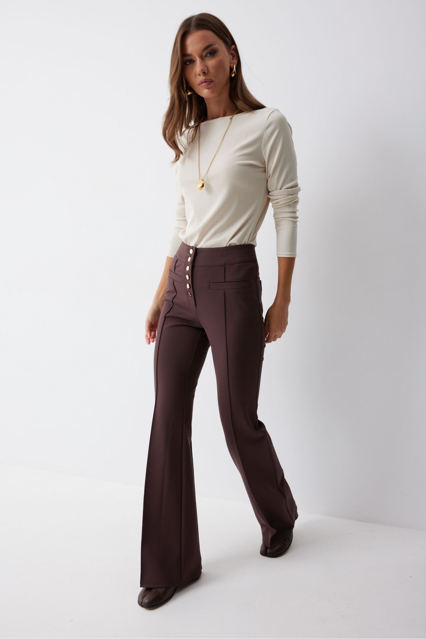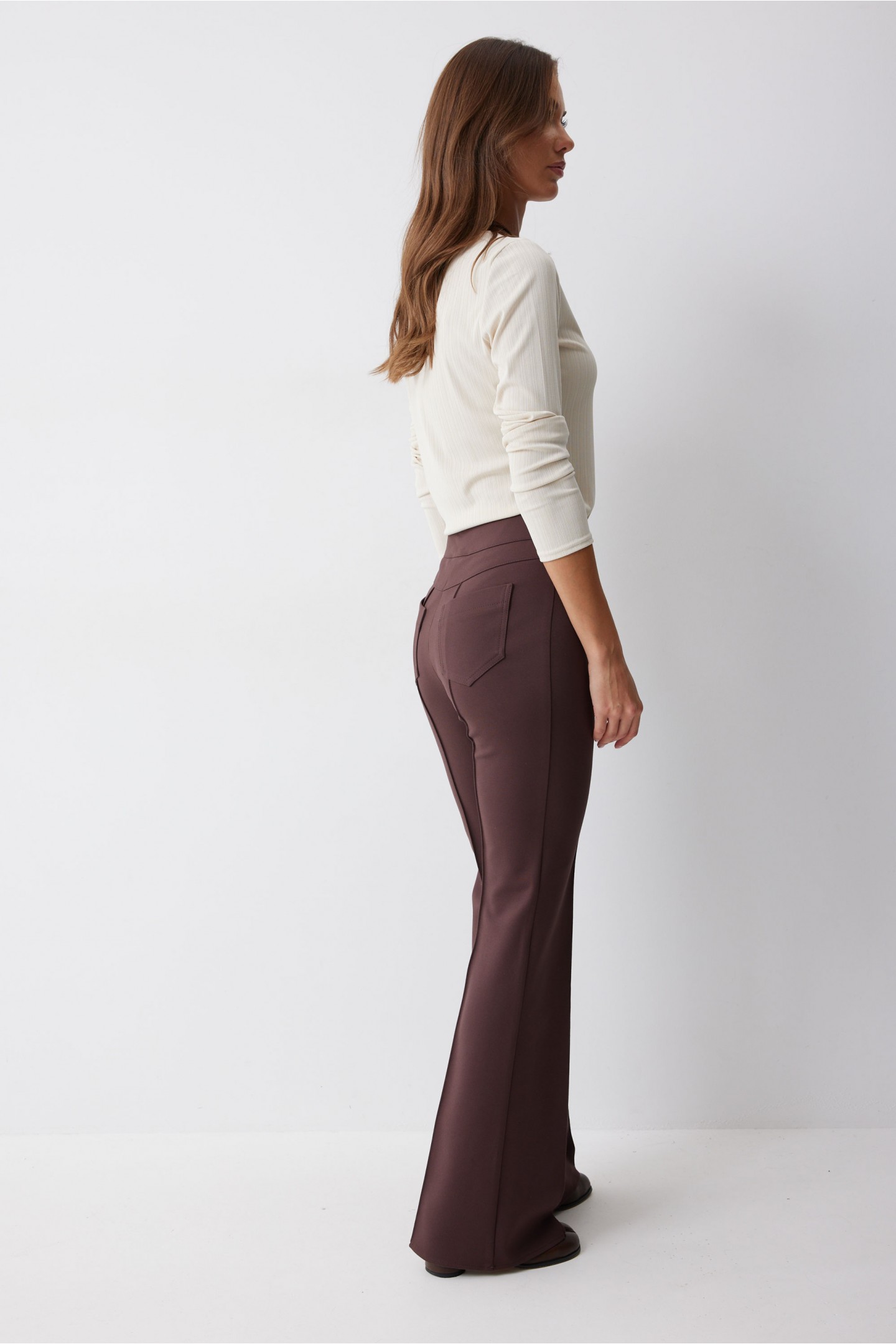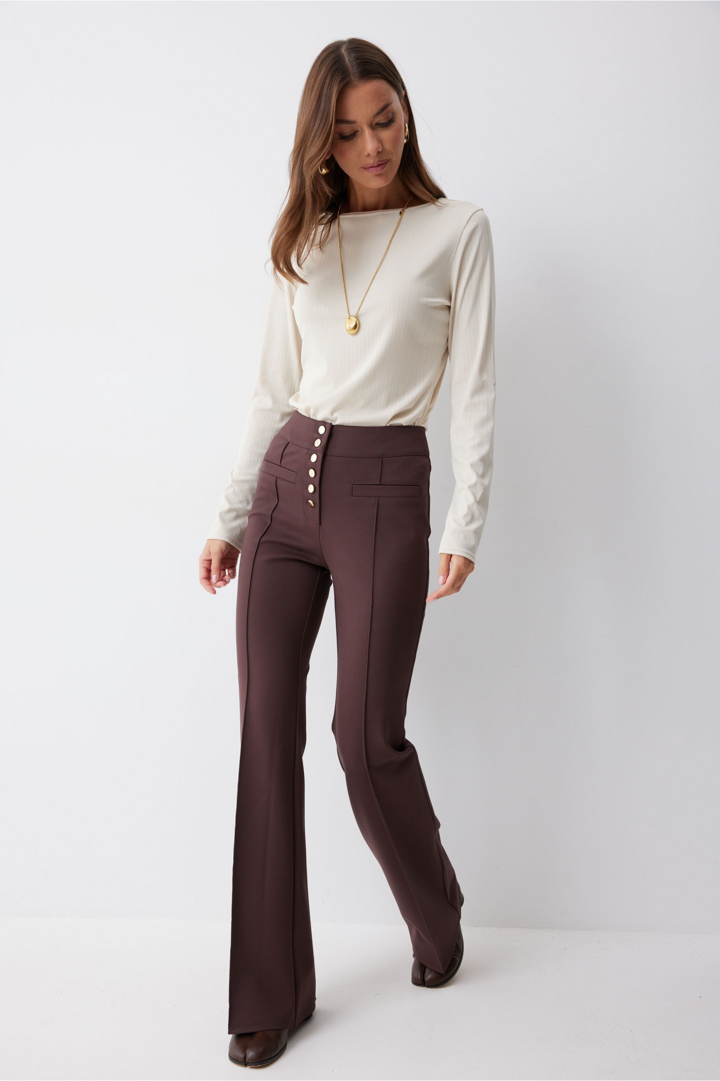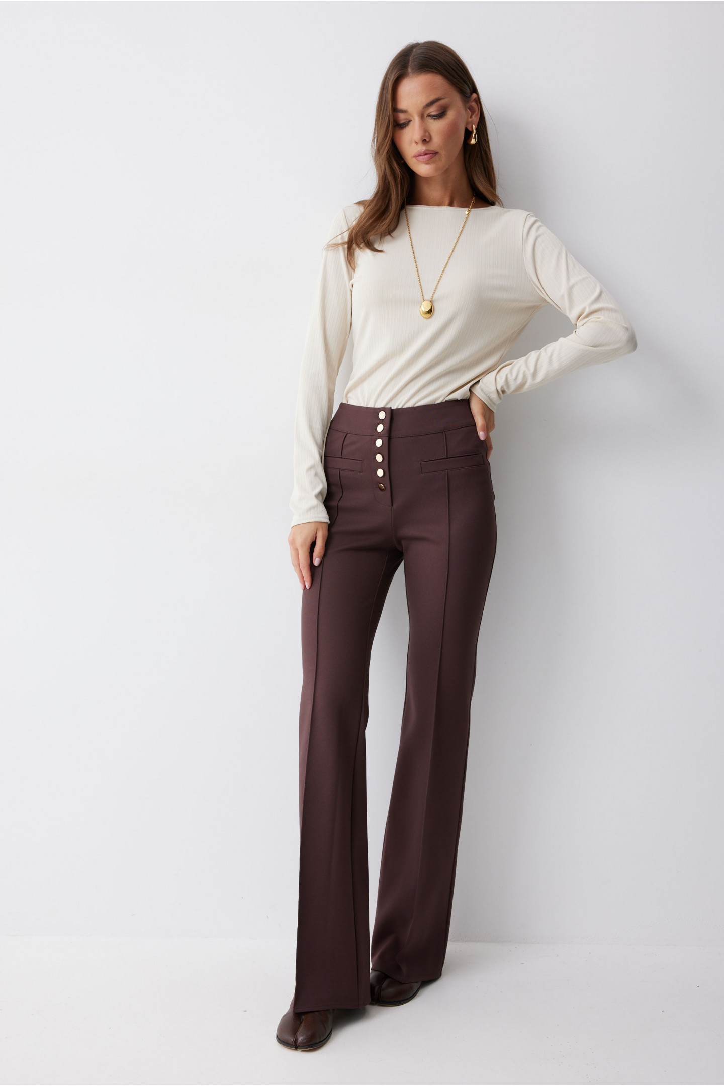 | Описание | Брюки прямого силуэта с защипами из трикотажного полотна. По верху брюк притачной пояс и центральная застежка на петли и пуговицы. На передних половинках защипы и декоративные листочки. На задних половинках брюк накладные карманы. Обращаем ваше внимание, что фурнитура может отличаться от фото. |