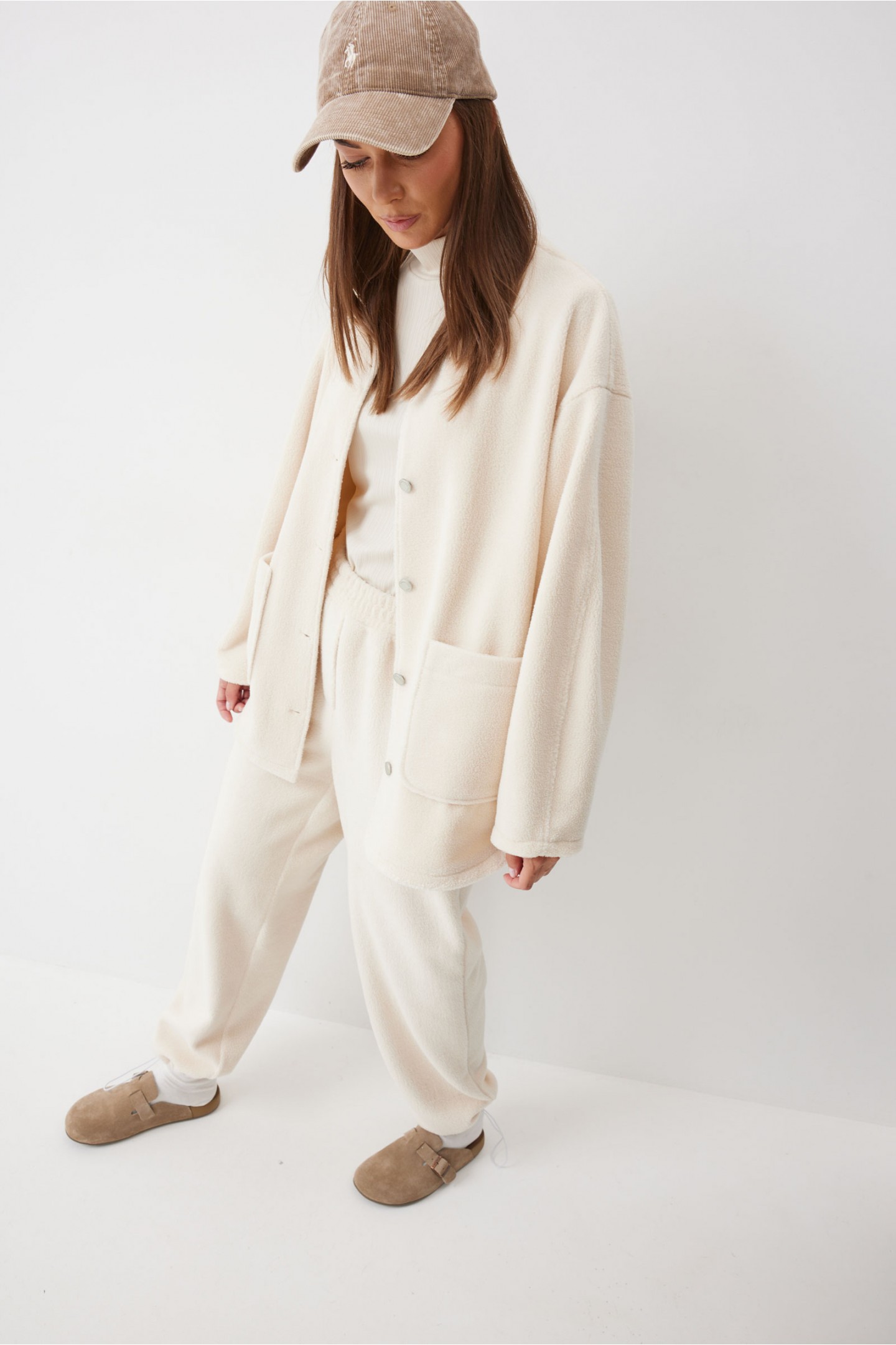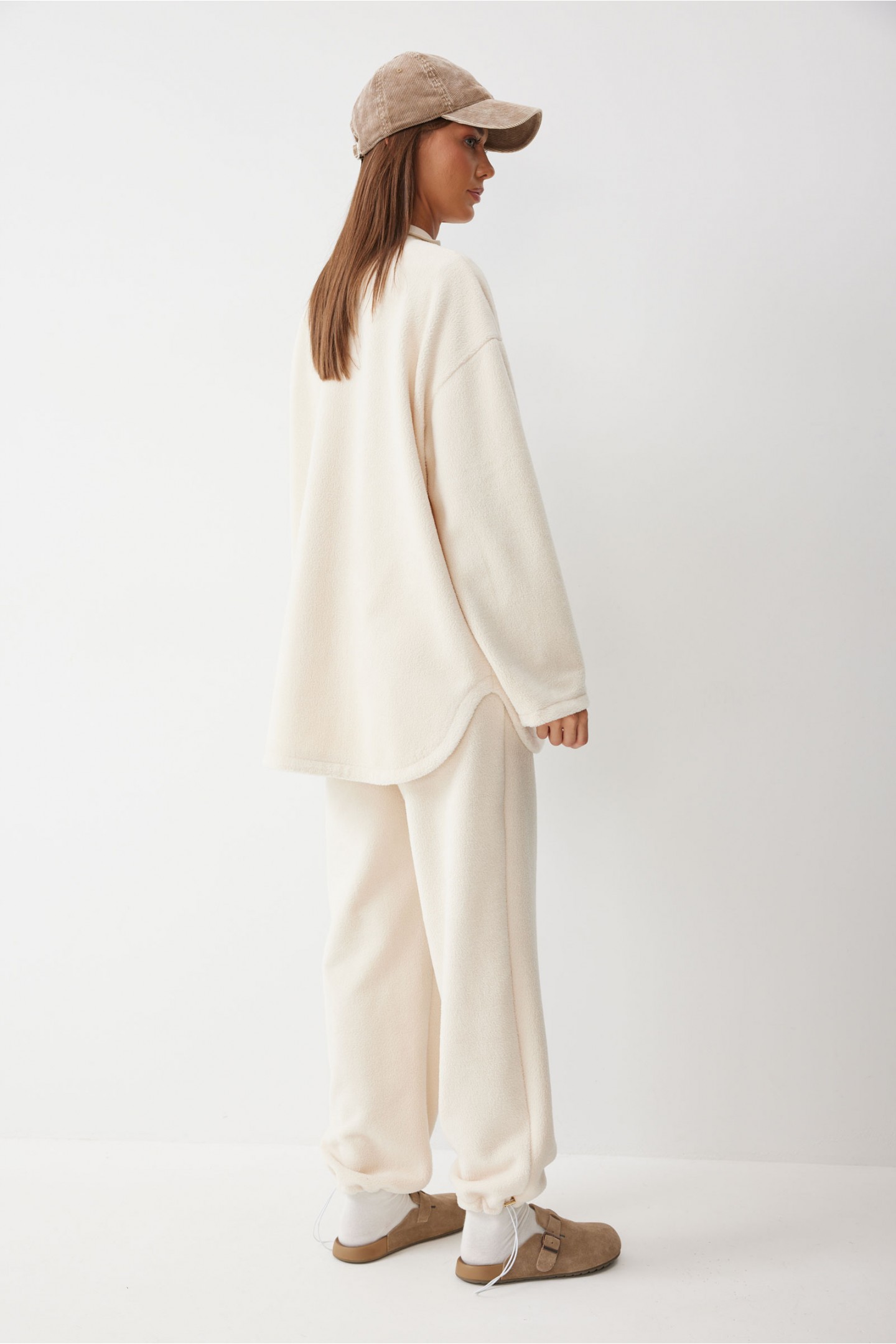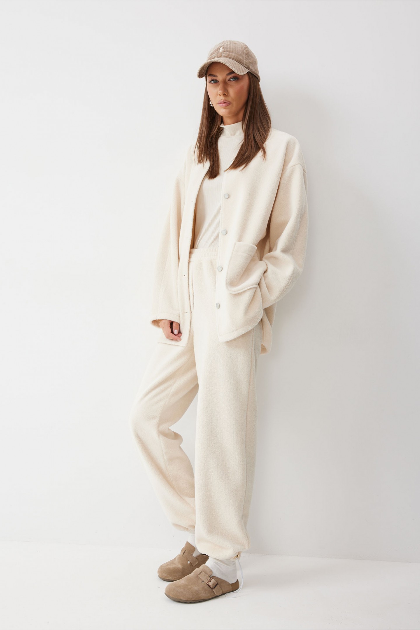 Описание Костюм, состоящий из жакета и брюк. Жакет прямого силуэта с фигурным низом из трикотажного полотна. Горловина округлая, по центру застежка на кнопки. Рукав со спущенной линией плеча. По переду накладные карманы. Жакет без подкладки. Обращаем ваше внимание, что фурнитура может отличаться от фото. Брюки прямого силуэта из комфортного трикотажного полотна. По верху брюк притачной пояс на резинке с декоративной нашивкой. На передних половинках обработаны карманы. Ширина брюк по низу регулируется за счет эластичной тесьмы и фиксаторов. Обращаем ваше внимание, что фурнитура может отличаться от фото.