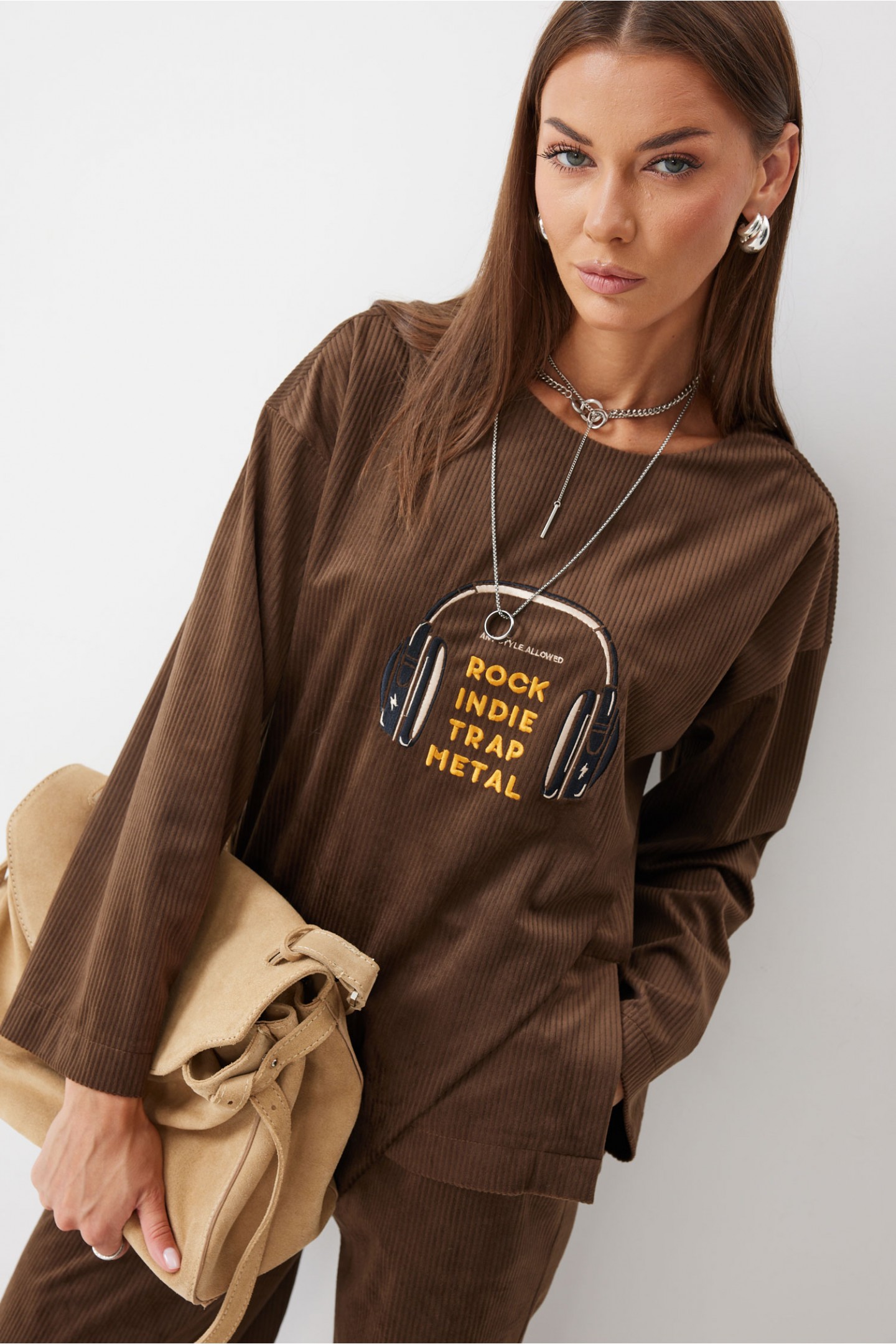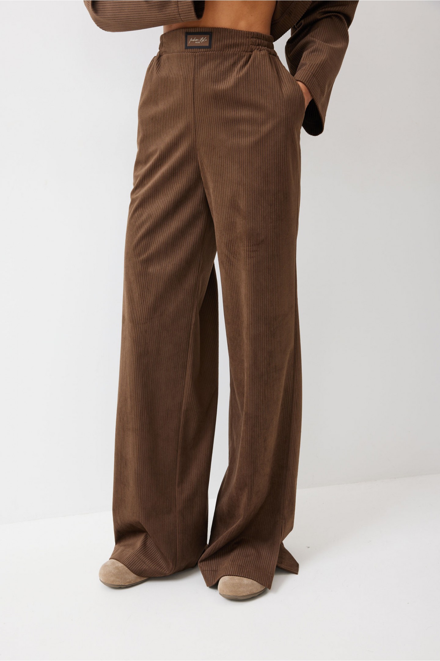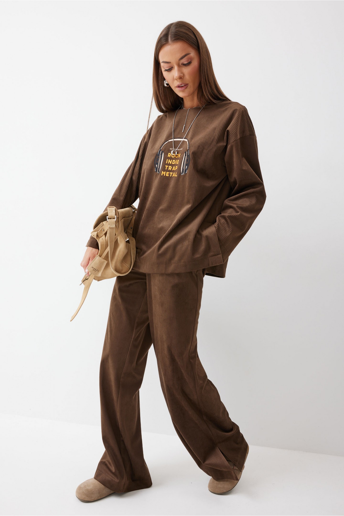 Описание Комплект, состоящий из джемпера и брюк. Джемпер прямого силуэта из костюмной ткани. Горловина округлая, на спинке застежка в среднем шве. Рукав со спущенной линией плеча длинный. По низу джемпера в боковом шве шлица. Брюки прямого силуэта из костюмной ткани. По верху брюк притачной пояс на резинке с декоративной нашивкой. На передних половинках обработаны карманы. Обращаем ваше внимание, что фурнитура может отличаться от фото.
