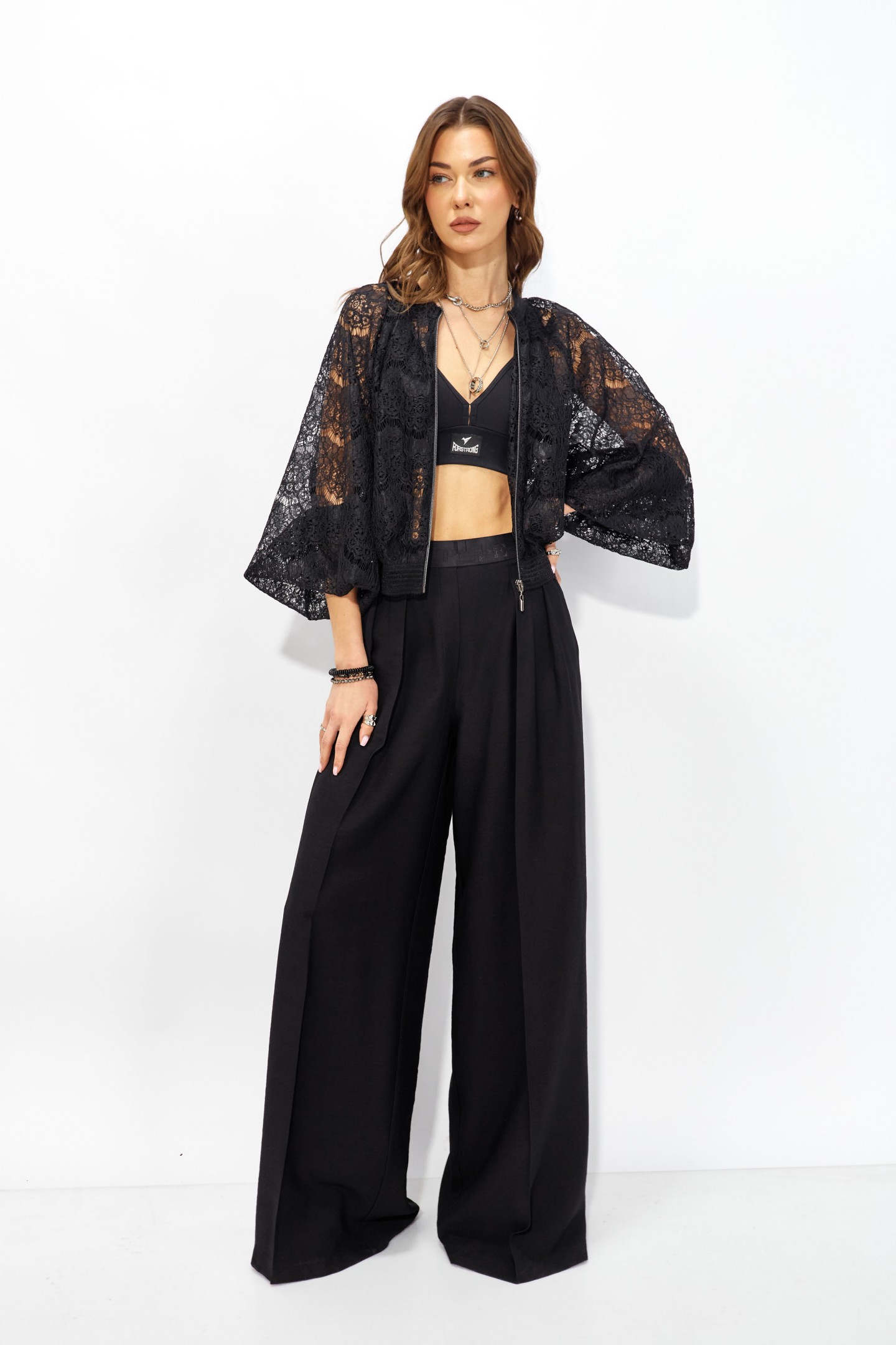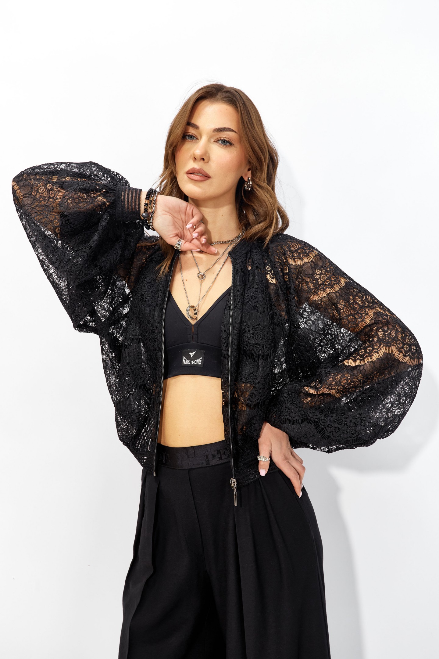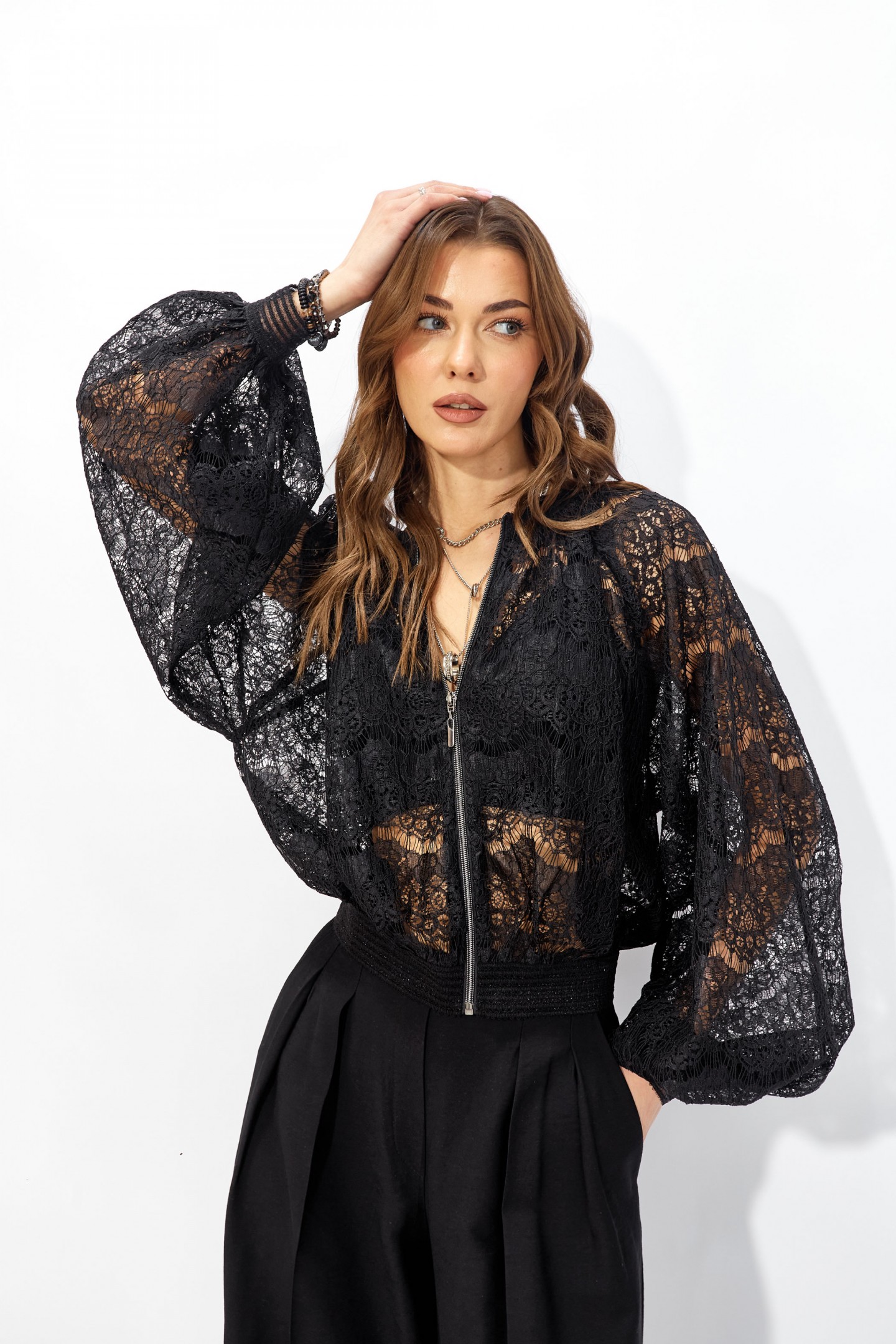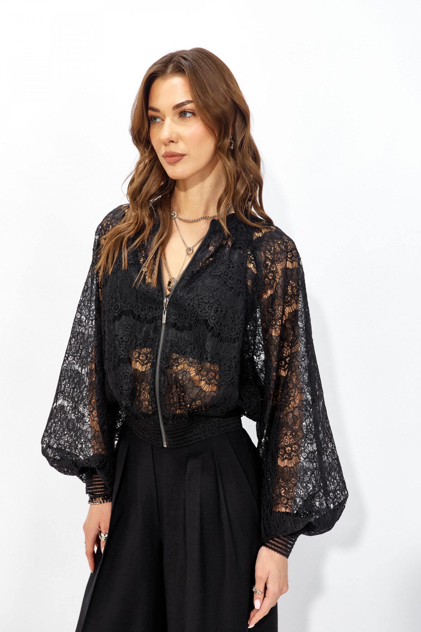 Описание Жакет прямого силуэта из кружева. Горловина обработана декоративной резинкой, по центру застежка на молнию. Рукав со спущенной линией плеча, по низу декоративная резинка. По низу жакета притачная резинка. Обращаем ваше внимание, что фурнитура может отличаться от фото.